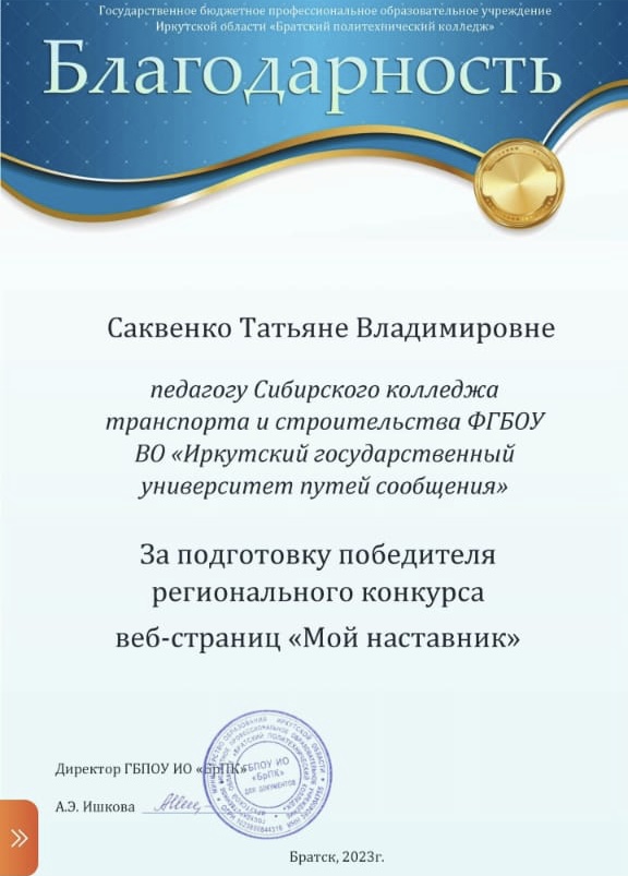 Студент СКТиС занял III место в Региональном конкурсе веб-страниц "Мой наставник"