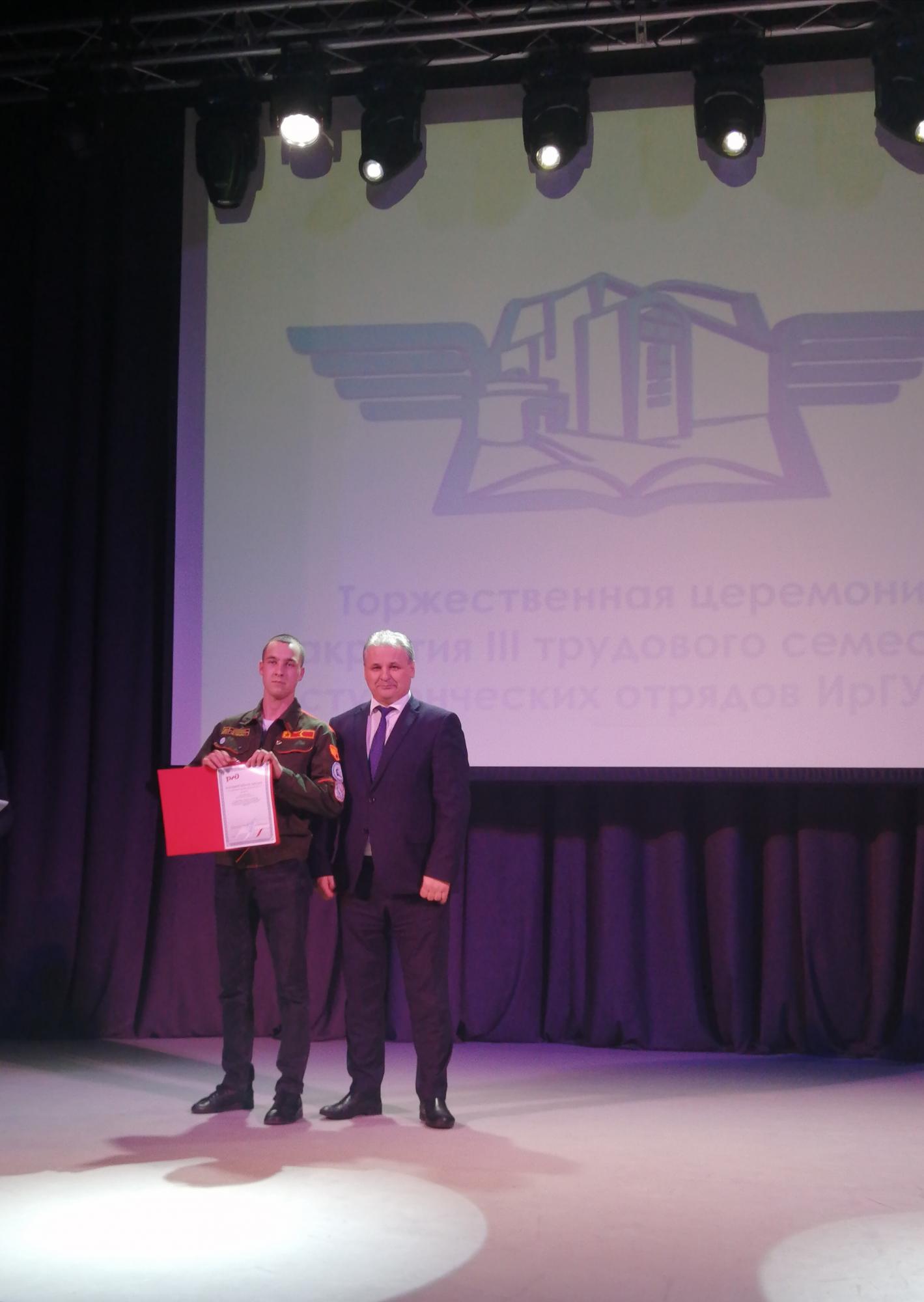 26 октября состоялась торжественная церемония закрытия III трудового семестра студенческих отрядов ИрГУПС. Всех участников мероприятия приветствовал ректор Иркутского государственного университета путей сообщения Юрий Анатольевич Трофимов, который поблагодарил ребят и вручил им заслуженные награды и благодарности. Студенты Сибирского колледжа транспорта и строительства являются бойцами студенческого строительного отряда «Байкал», который стал лучшим студенческим строительным отрядом по производственным показателям. Ежегодно в студенческие отряды набираются студенты для общестроительных работ, как на всероссийских стройках, так и на территории Иркутской области. Желаем новых проектов и реализации самых сложных планов. Пусть перед вами откроются новые горизонты,а поставленные задачи наступают самые смелые и неожиданные решения! Традиционное подведение итогов работы строительных отрядов завершается праздничным концертом.