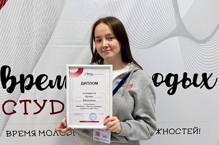 Василина Кучко, председатель ЦПО СКТиС - ППОС РОСПРОФЖЕЛ студентов ИрГУПС, студентка 2 курса, стала ФИНАЛИСТОМ "Время молодых. Студенты ИрГУПС"