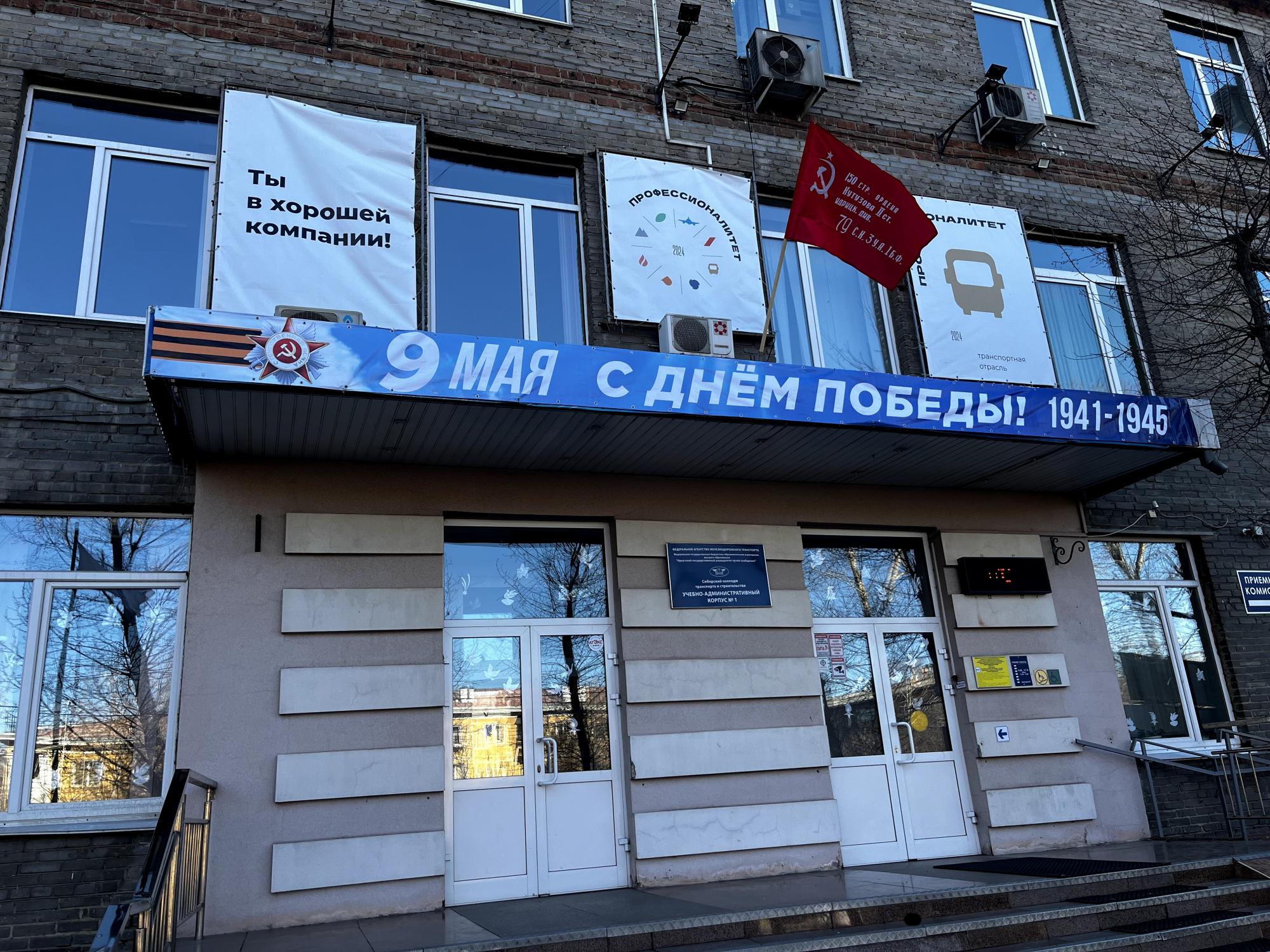 В преддверии 79-й годовщины Победы советского народа в Великой Отечественной войне Сибирский колледж транспорта и строительства ИрГУПС принял участие во Всероссийской акции «Флаги Победы», «Окна Победы»