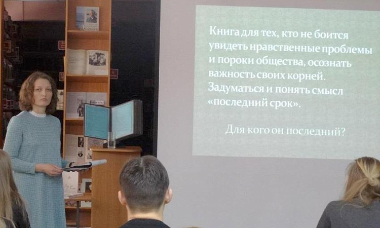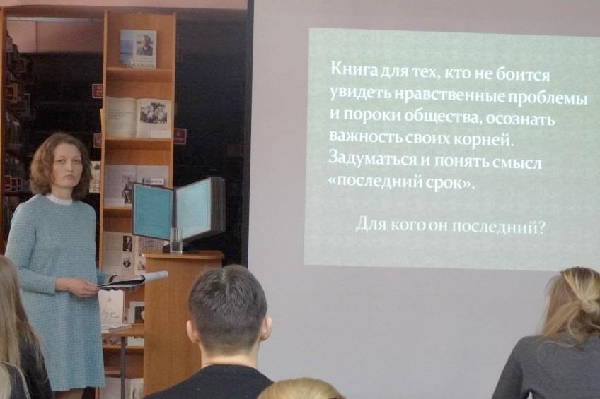 На очередную встречу студентов колледжа пригласили в городскую библиотеку №16. В уютном гостеприимном читальном зале сотрудники библиотеки приготовили интересный рассказ о жизни и творчестве , отрывки из фильмов по произведениям Валентина Григорьевича и из документального фильма. С того момента, когда не стало писателя, его слова и мысли обрели особую значимость. Так уж повелось, ценят человека, после ухода. О жизни и творчестве Валентина Григорьевича Распутина скромного и талантливого человека нужно не только говорить, но читать, изучать его произведения как мастера народного слова. В заключение встречи, у студентов появилось желание записаться в библиотеку и читать его произведения.