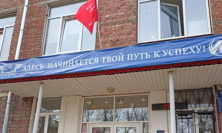 На учебных корпусах и общежитии 6 колледжа разместили копию Знамени Победы✨