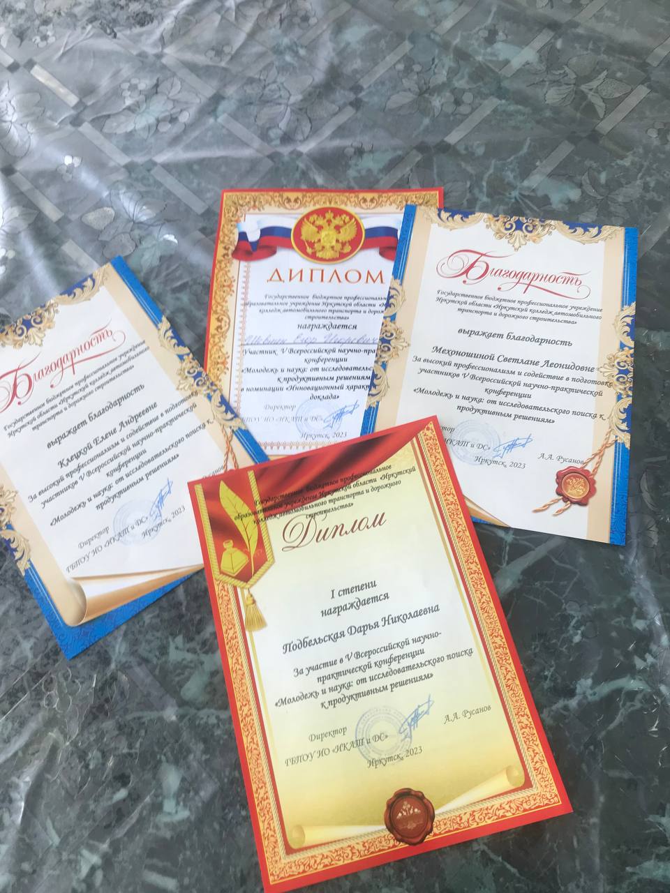 20 апреля преподаватели Клецкая Е.А, Мехоношина С.Л и Подбельская Д.Н со студентами Команденко Алиной и Шевниным Егором участвовали во Всероссийской научно практической конференции в Иркутском колледже автомобильного транспорта и дорожного строительства