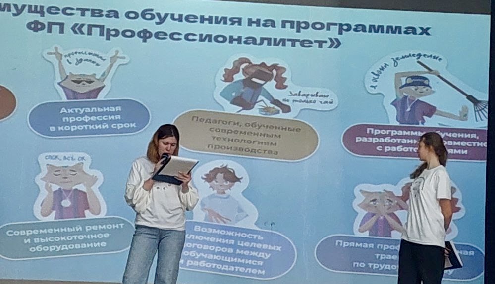 Амбассадоры продемонстрировали презентацию о проекте «Профессионалитет» , фильм о нашем колледже, раздали буклеты и провели анкетирование.