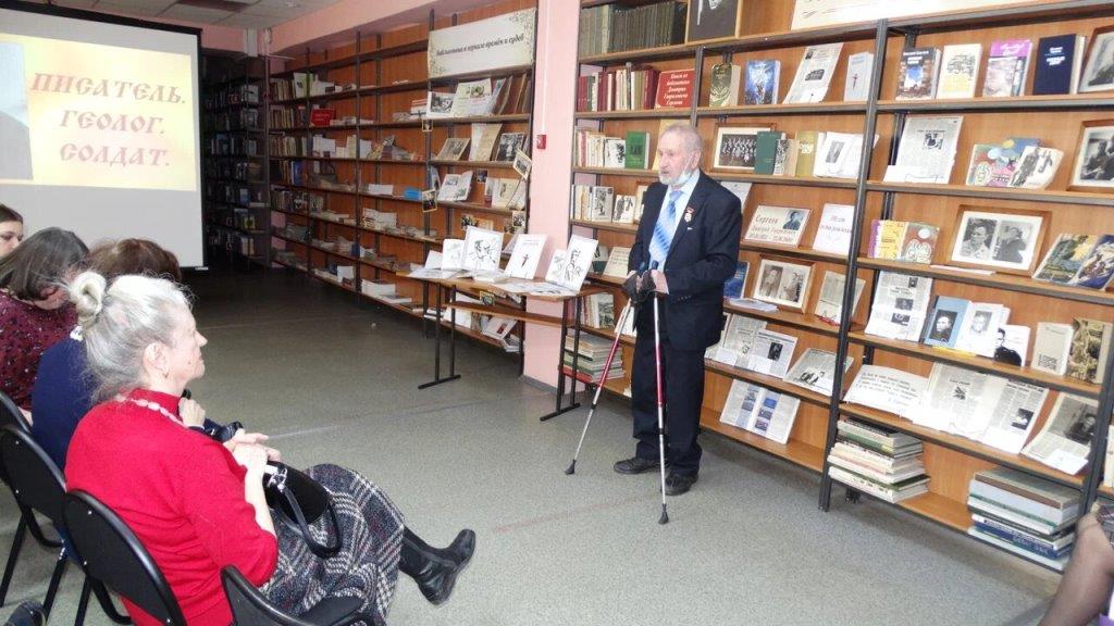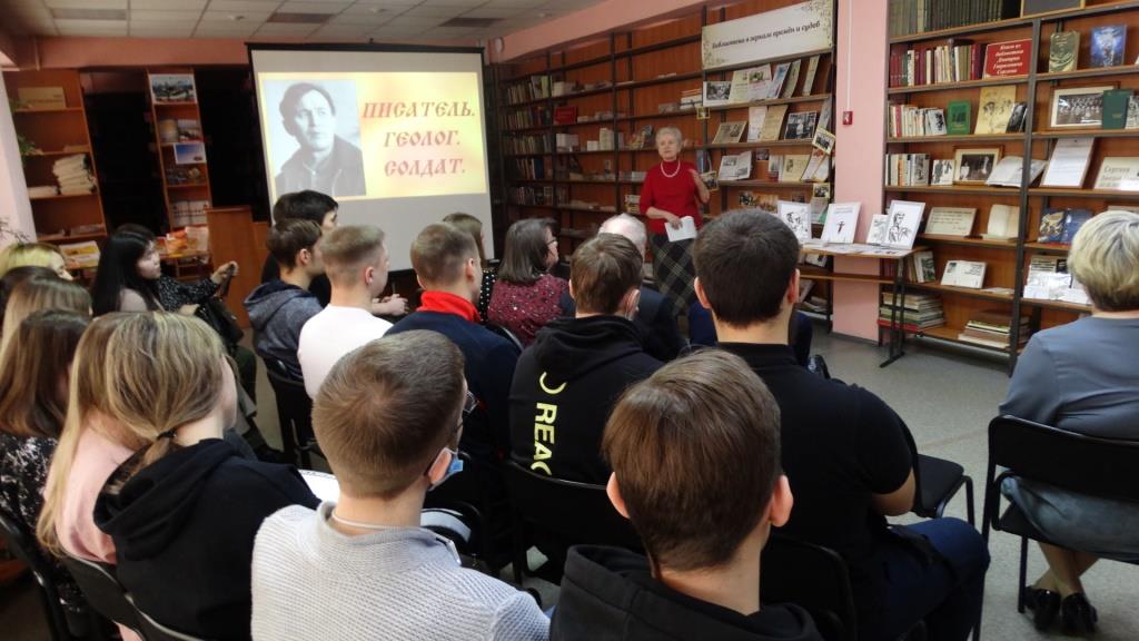 Студенты старшего курса гр. ГНХ 9-18-1 пришли в библиотеку уже не в первый раз, поэтому им было интересно узнать о человеке нашем земляке, писателе, имя которого присвоено библиотеке №16 и школе, в которой он учился. Дмитрий Гаврилович Сергеев (1922—2000) — русский советский прозаик, геолог. Член Союза писателей СССР . Член Союза российских писателей. Заслуженный геолог РСФСР. Почётный гражданин Иркутска . Участник Великой Отечественной войны.