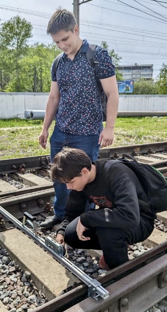 Под руководством преподавателя Егора Садырина ребята познакомились с профессией «Монтер пути» и поработали с путевым шаблоном — ручным переносным путевым инструментом для контроля параметров железнодорожного пути, который применяется на железнодорожном транспорте при строительстве, ремонте и текущем содержании пути.