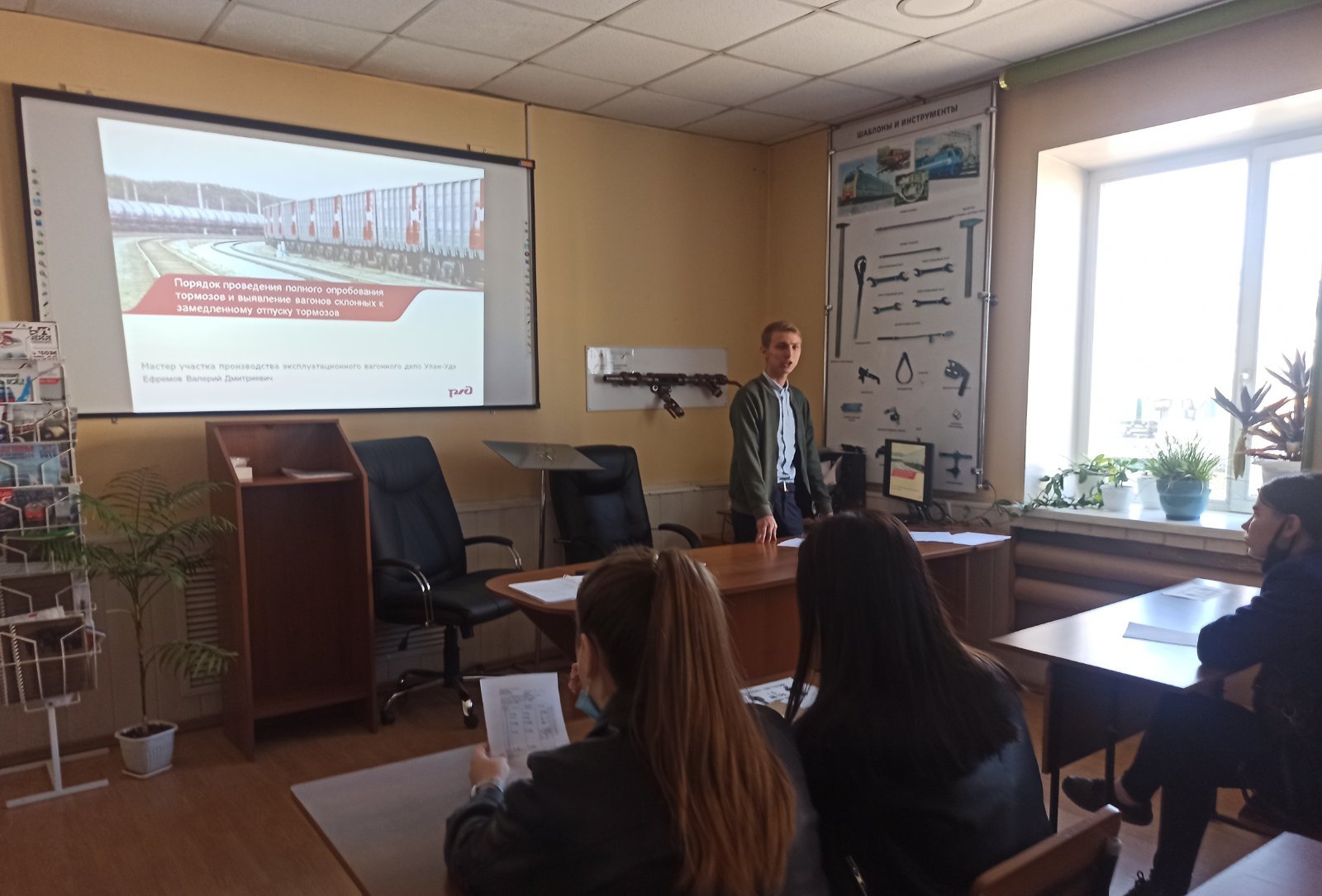 16 и 17 сентября 2021 г. в техническом классе Вагонного эксплуатационного депо Улан-Удэ состоялись учебные занятия среди обучающихся 4 курса специальности 23.02.06 Техническая эксплуатация подвижного состава железных дорог (вагоны) Улан-Удэнского колледжа железнодорожного транспорта.
