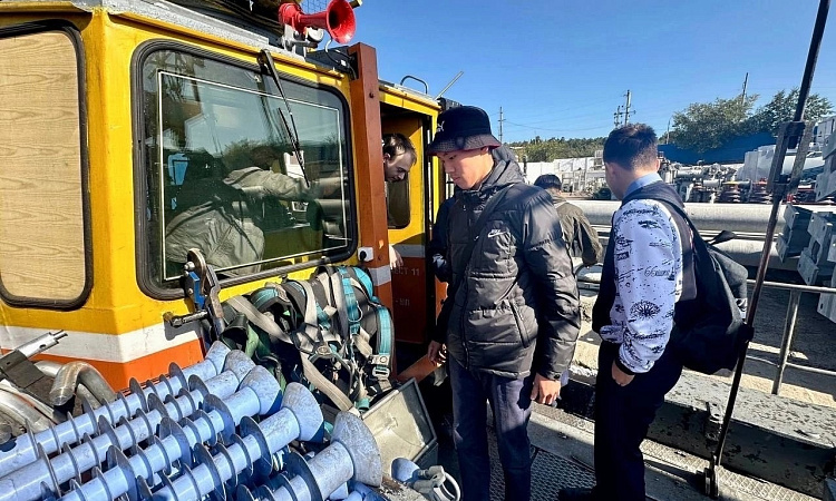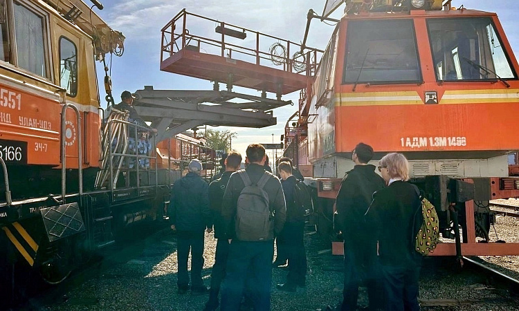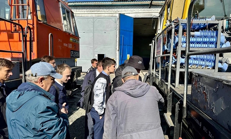 Сотрудники дистанции электроснабжения совместно с главным инженером Пепеляевым Д.А., в рамках изучения курса, рассказали студентам об устройстве самоходного подвижного состава, наглядно продемонстрировали принцип его работы. А также провели инструктаж по технике безопасности.
