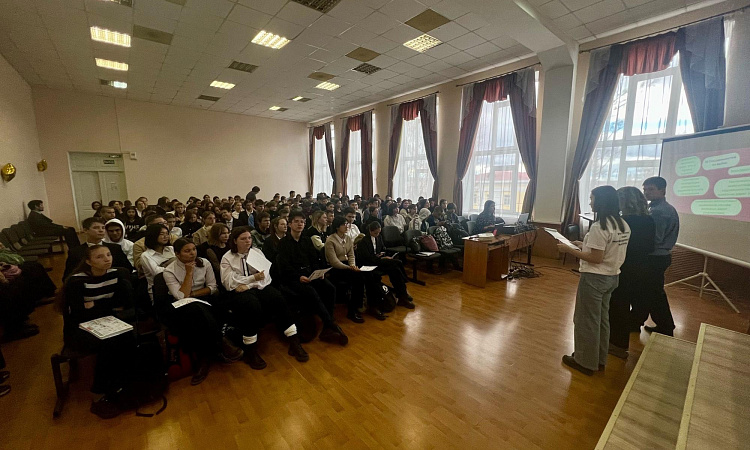 Амбассадоры Улан-Удэнского колледжа железнодорожного транспорта провели Всероссийский классный час для учеников выпускных классов МАОУ Кабанской СОШ, где рассказали о преимуществах и перспективах Федерального проекта «Профессионалитет», востребованности специалистов, которых готовят в рамках данного проекта, о сотрудничестве колледжа с опорным работодателем ОАО «РЖД».