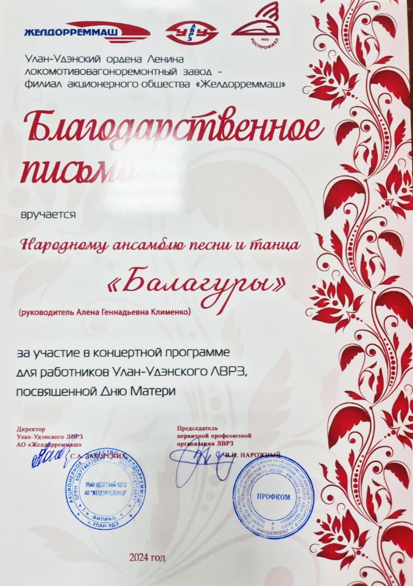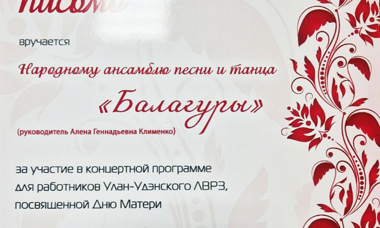 Ансамбль "Балагуры" УУКЖТ ИрГУПС принял участие в концерте для работников УУ ЛВРЗ