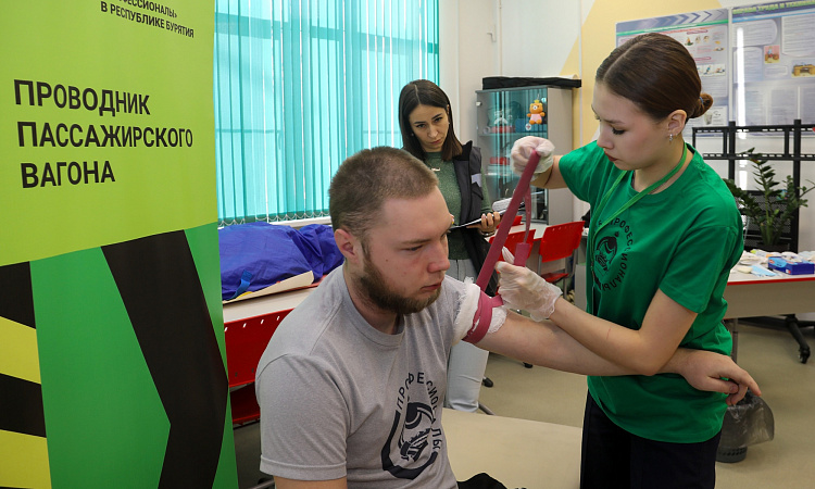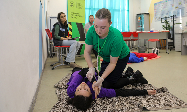 Участники регионального этапа Чемпионата по профессиональному мастерству «Профессионалы» - 2025 в Республике Бурятия по компетенции "Проводник пассажирского вагона" продемонстрировали свои знания приемов оказания первой помощи.