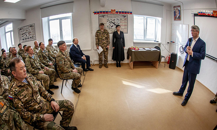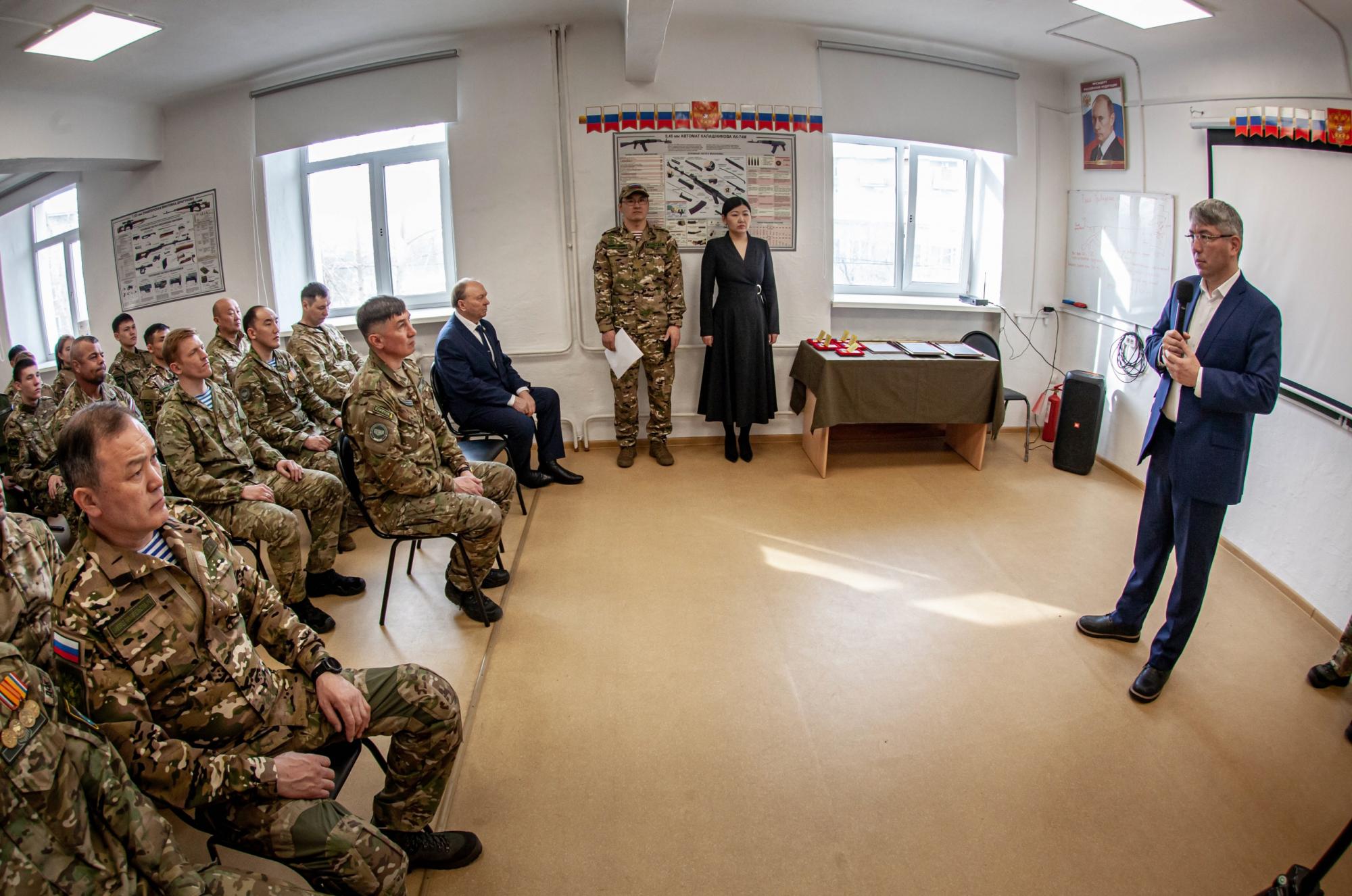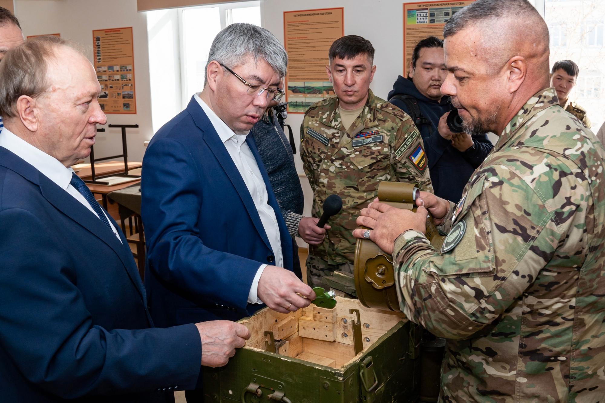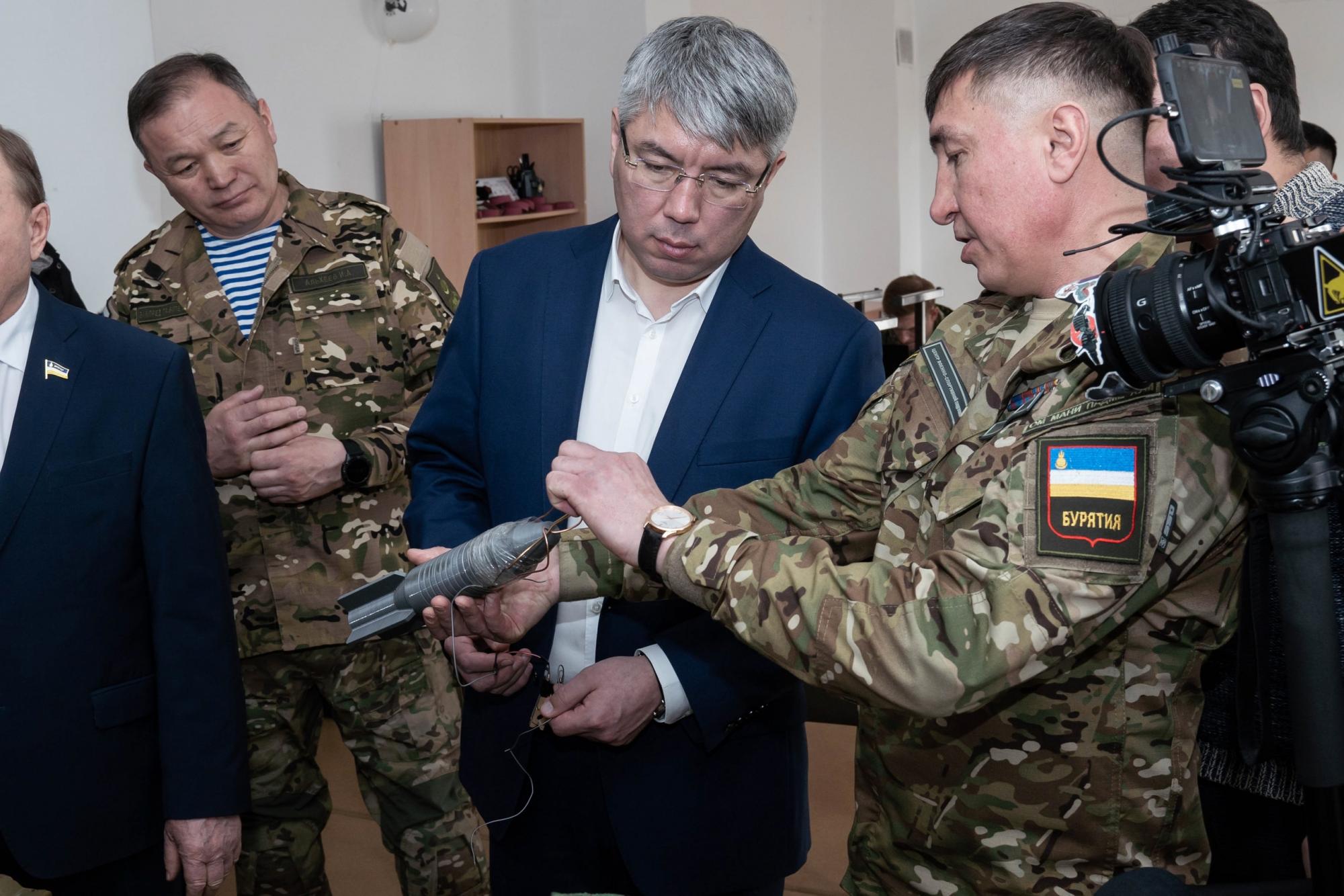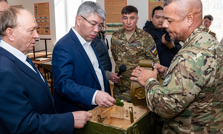 Можно добавить, перед главой республики исполнили знаменитый хит «Русские не сдаются, буряты не бегут», курсант Иван Булыгин зачитал стих «Боец Чингис», посвящённый герою СВО. Далее Алексею Цыденову устроили экскурсию по учебным аудиториям филиала, показав оборудование для военно-спортивных игр, учебные пособия по минно-взрывному делу и занятия по тактической медицине. В завершение визита глава Бурятии сделал общее фото с курсантами.