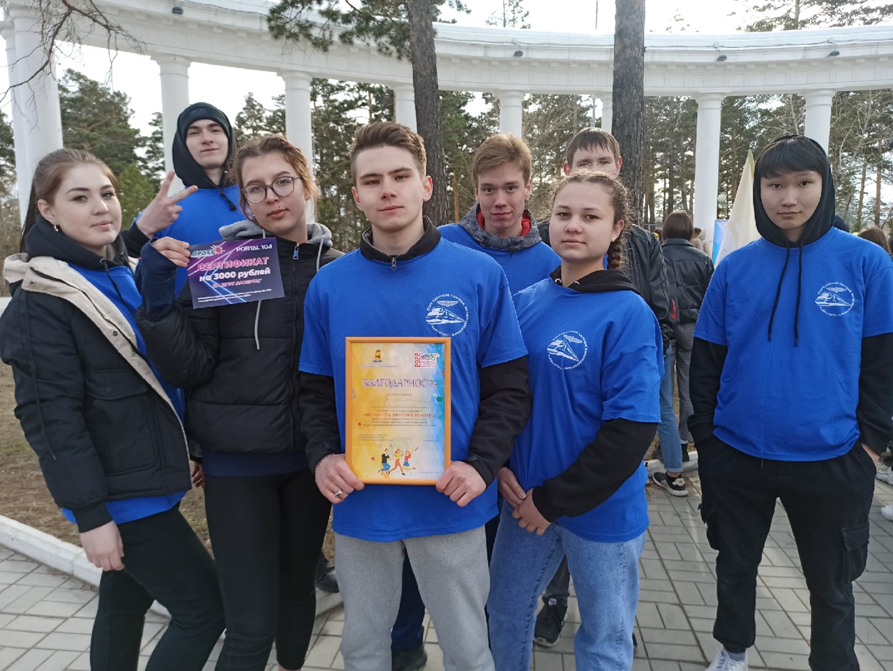 Команда УУКЖТ в составе Фролова Станислава, Чемчугова Вадима, Титова Романа, Лебедева Константина, Мангутова Артема, Трусовой Александры, Григорьевой Анастасии, Гусляковой Дарьи, Помулевой Галины, Шокаревой Валерии достойно представили наш колледж, получили Благодарность и Сертификат на 3000 рублей от спонсора фестиваля.