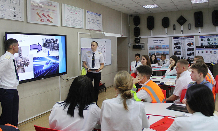 Студенты представили свои специальности в презентациях, показали умение быть коммуникабельными, работать в команде, прошли испытания на логику, творческий этап и конечно ответили на вопросы викторины по истории РЖД.