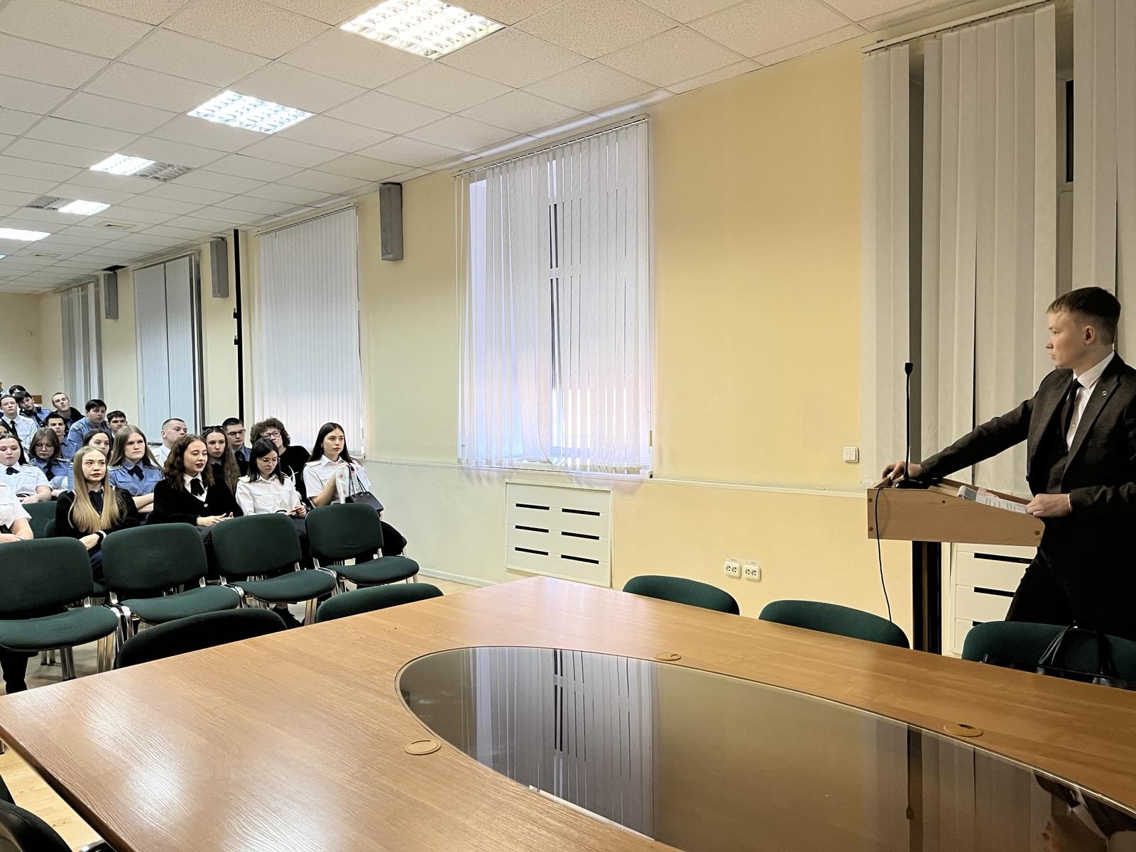 Никита Олегович рассказал студентам об ответственности работников во время проведения комиссионного осмотра, правилах, а также мерах охраны труда работников железнодорожного транспорта.