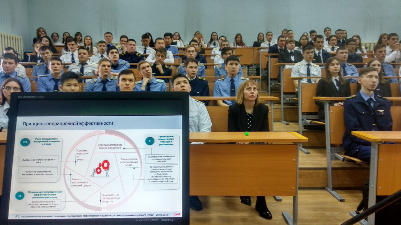 20 февраля в стенах Улан-Удэнского колледжа железнодорожного транспорта состоялась лекция заместителя начальника Восточно-Сибирской железной дороги (по территориальному управлению) в Улан-Удэнском регионе Тимофеева В.Н. для студентов 3 курса всех специальностей по теме "О перспективных направлениях повышения операционной эффективности и развития системы управления в холдинге "РЖД"".