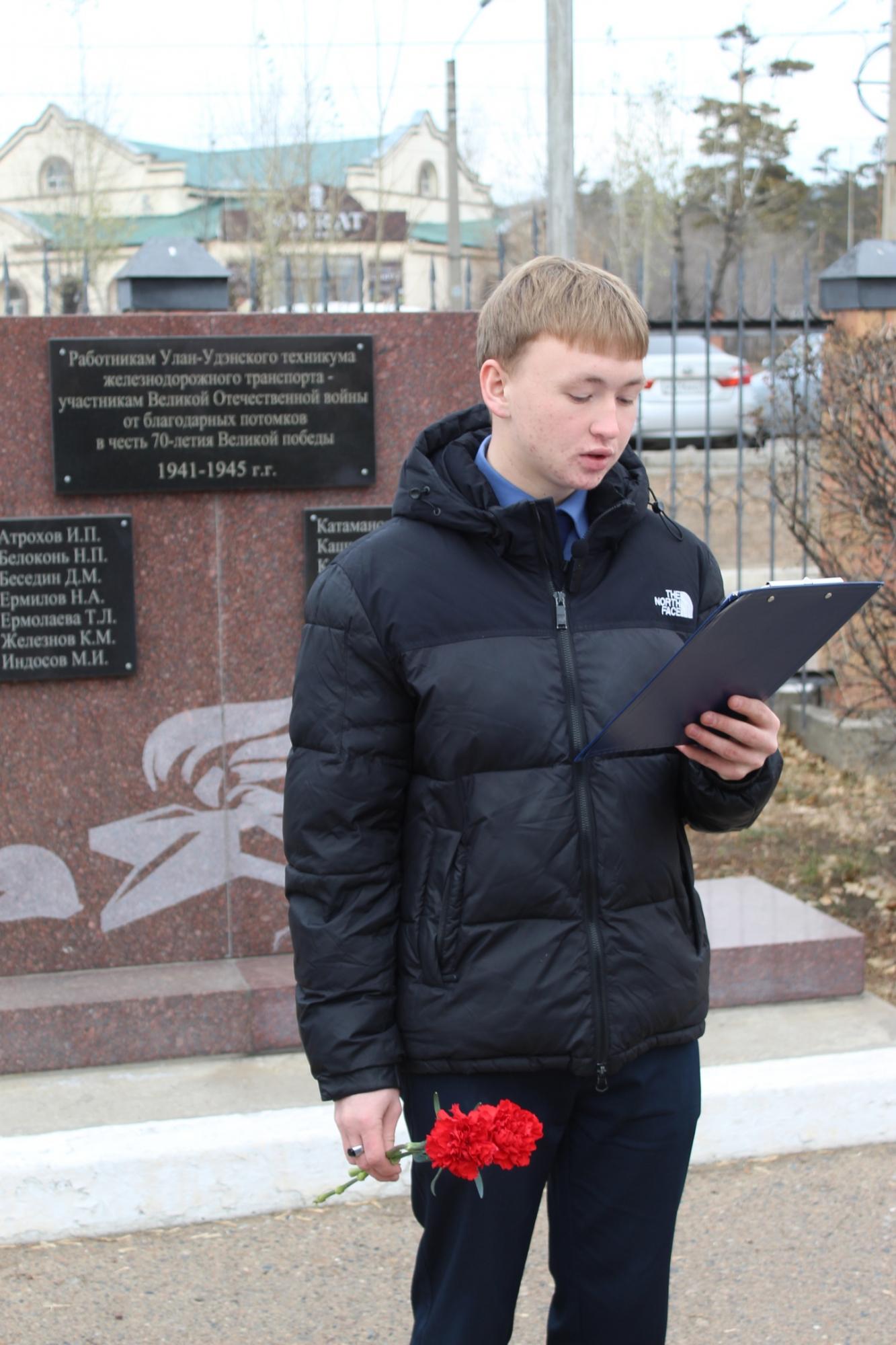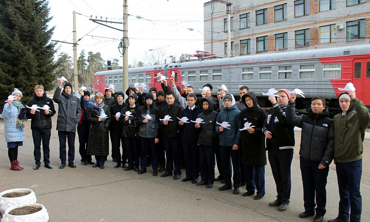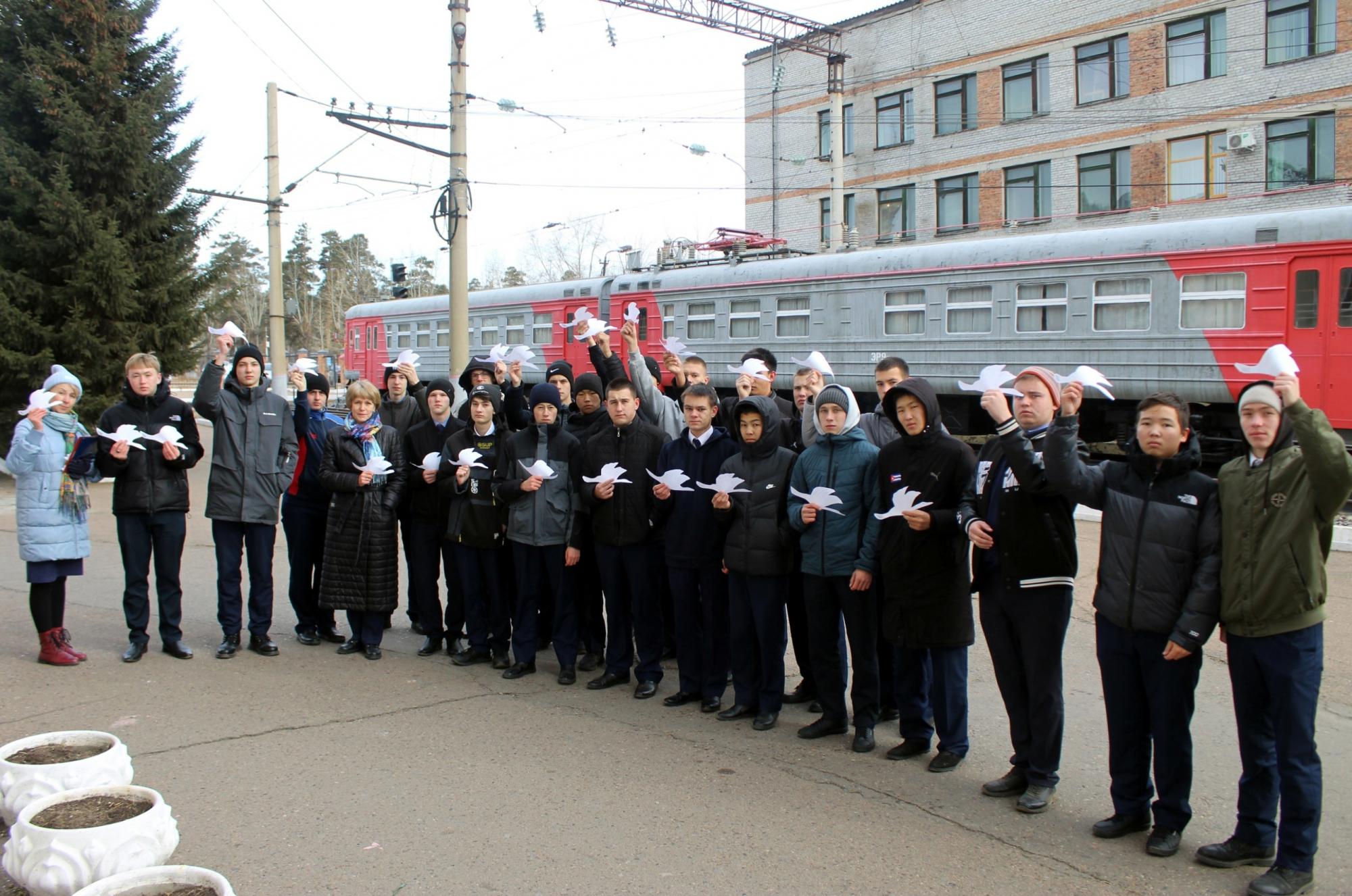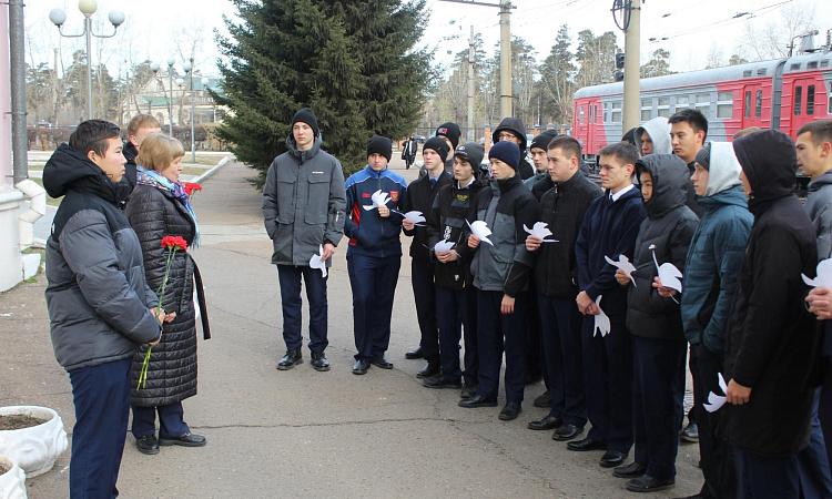 В рамках Дня белых журавлей в УУКЖТ ИрГУПС прошел митинг около памятника работникам колледжа- участникам Великой Отечественной войны, инициированный студентами 2 курса Лапиным Артемом и Далай Сайын-Белеком. Далее студенты возложили цветы у мемориальных досок герою Великой Отечественной войны Иванову И.С, воинам-интернационалистам Капустину В и Балахнину Г.