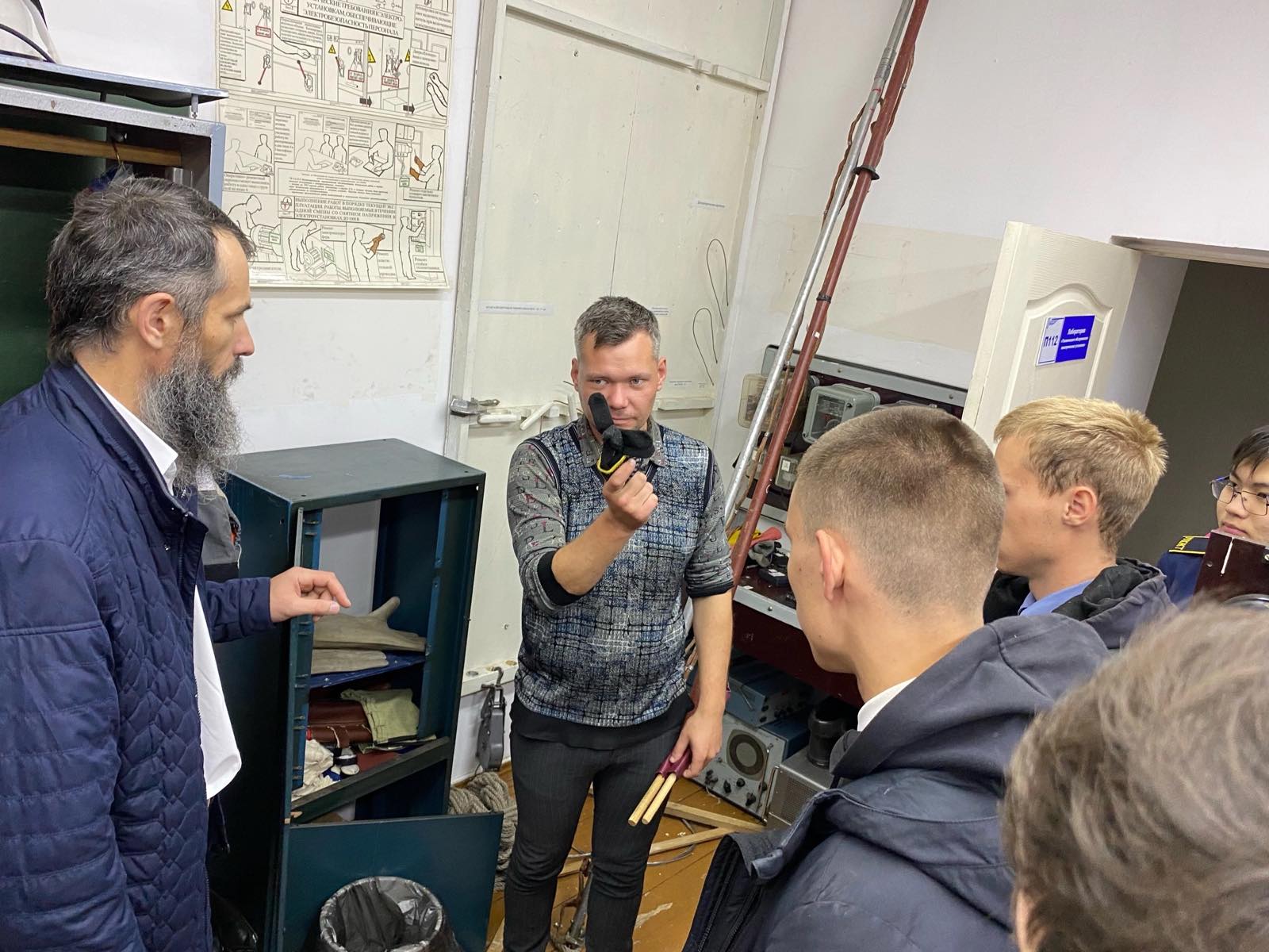 Занятие провели совместно Кузнецов М.Н. - преподаватель УУКЖТ и Манукян П.Р. начальник технического отдела Улан-Удэнской дистанции электроснабжения, эксперт демонстрационного экзамена. Экзамен направлен на определение уровня освоения и степени сформированности профессиональных умений и навыков путем проведения независимой экспертной оценки выполненных выпускником практических заданий в реальных или смоделированных производственных условиях.