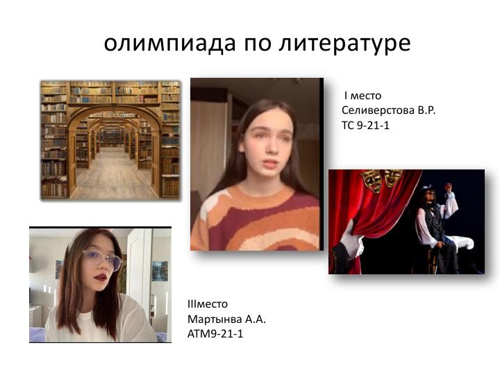 В олимпиаде по литературе первокурсники колледжа продемонстрировали творческие способности, читательскую эрудицию, аналитические навыки. Победителями олимпиады стали студенты отделения АТЭС: