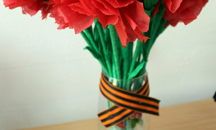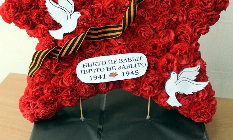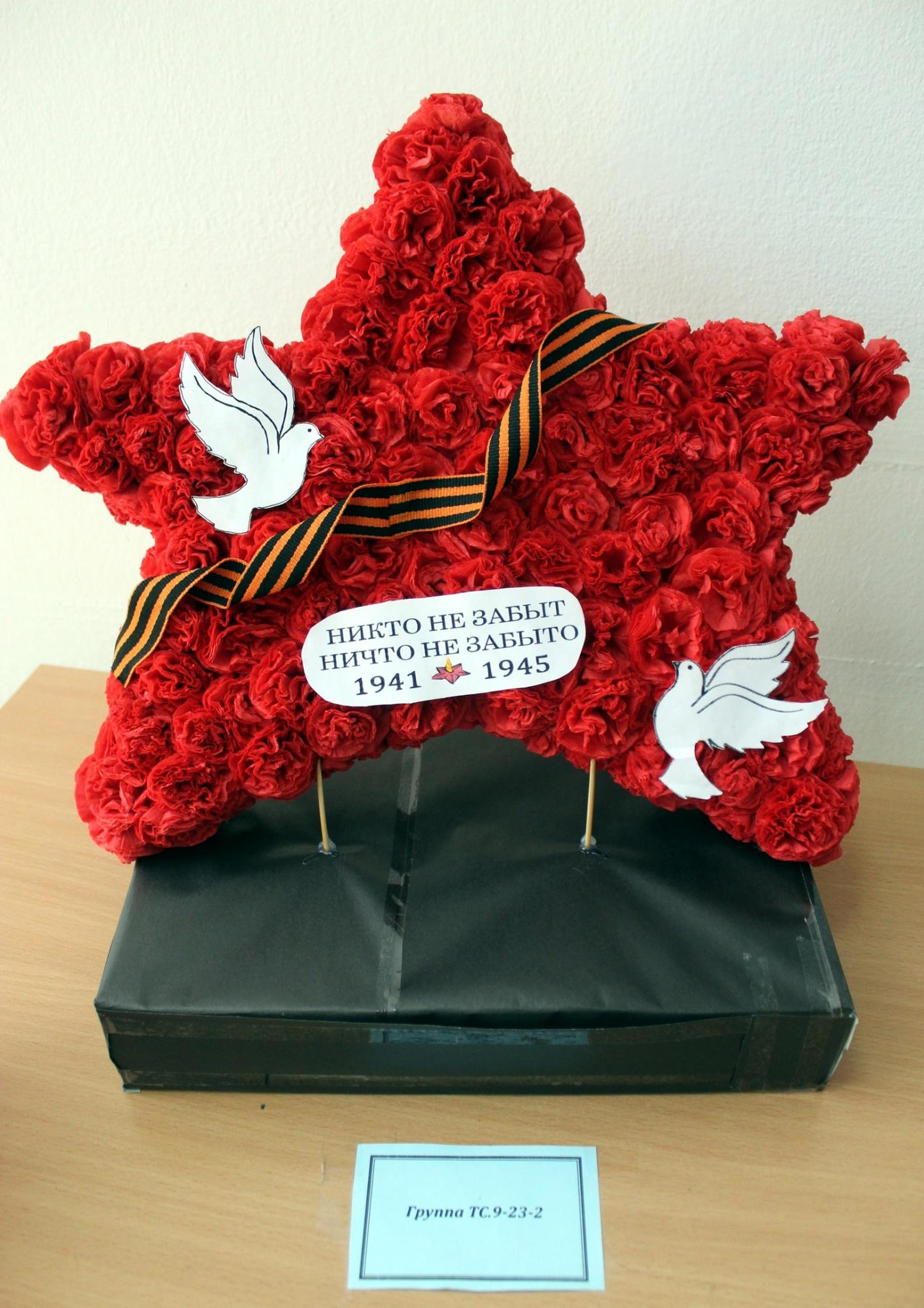 Около актового зала представлены работы участников Конкурс- выставки декоративно-прикладного искусства, посвящённой Дню Победы «Наша Победа». Студенты представили свои работы, выполненные как индивидуально, так и авториским коллективом. В каждой работе вложена благодарность за подвиг нашего народа в Великой Отечественной войне.