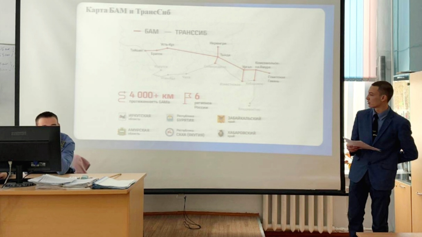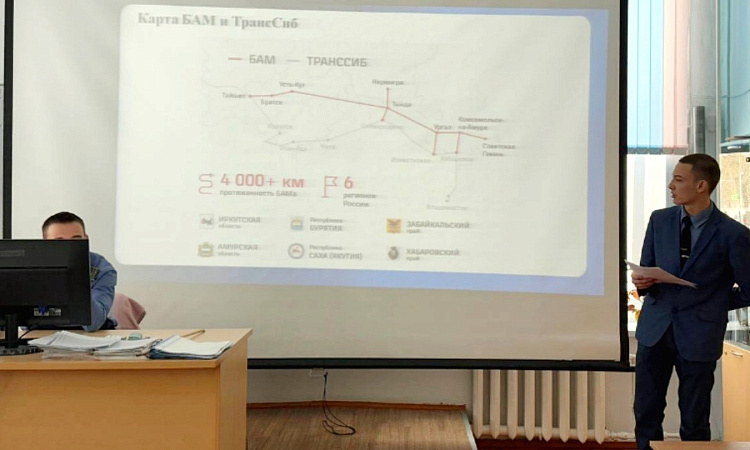 Студенты заслушали историческую справку о строительстве БАМа, познакомились с особенностями строительства в сложных природных условиях, а также закрепили свои знания в небольшой викторине.