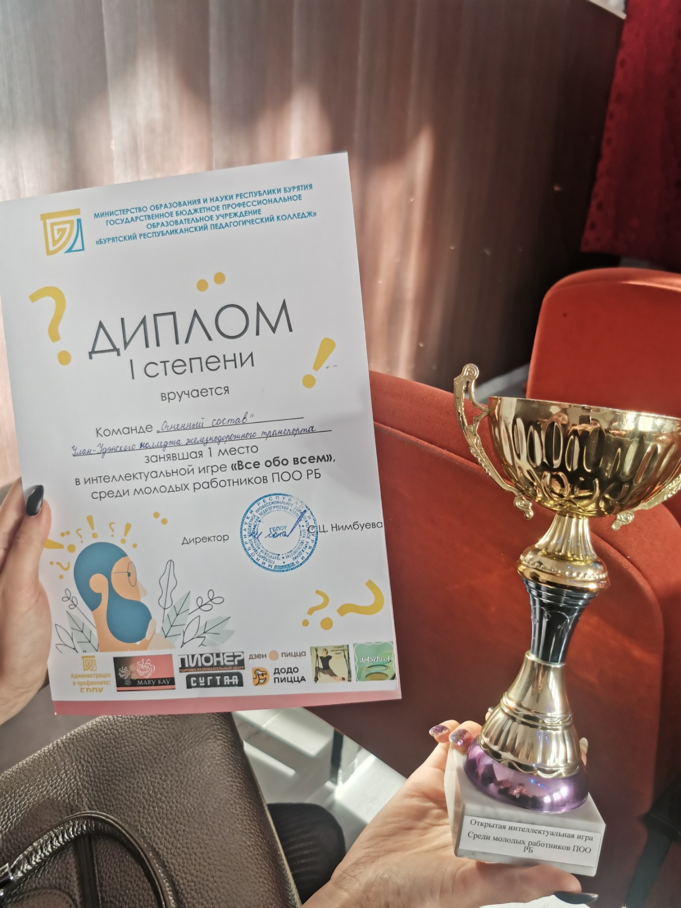 1 место: Улан - Удэнский колледж железнодорожного транспорта – филиал ФГБОУ ВО ИрГУПС;