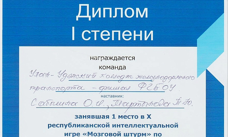 Победа студентов УУКЖТ ИрГУПС в X республиканской игре "Мозговой штурм" по математике