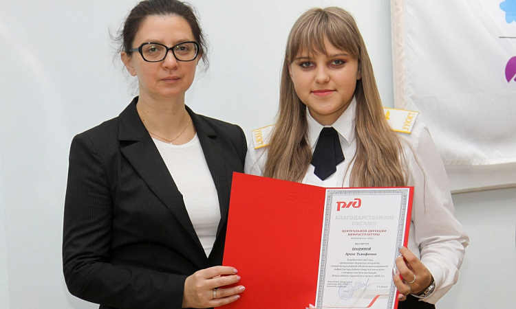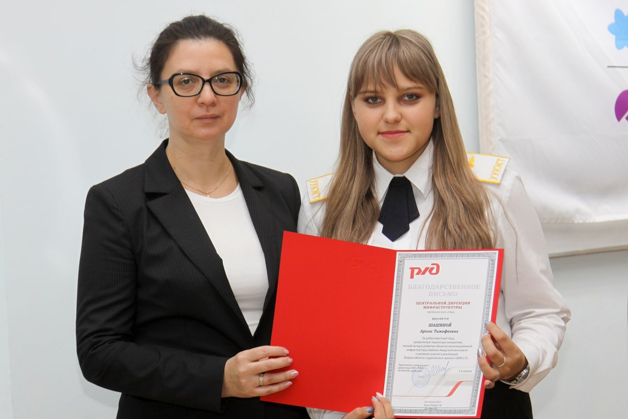 Благодарственными письмами Центральной дирекции инфраструктуры ОАО "РЖД" были награждены студенты колледжа Иванова Юлия, Клепиков Егор, Клепиков Андрей, Студнев Никита, Шашина Арина, Быстрова Екатерина, Локтионова Алина. ПОЗДРАВЛЯЕМ! ТАК ДЕРЖАТЬ!