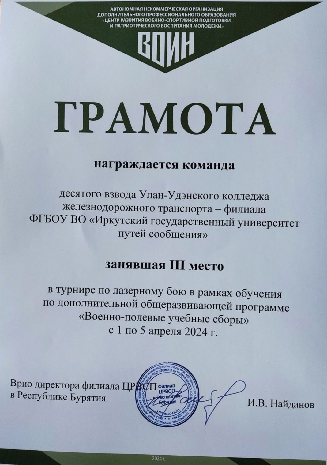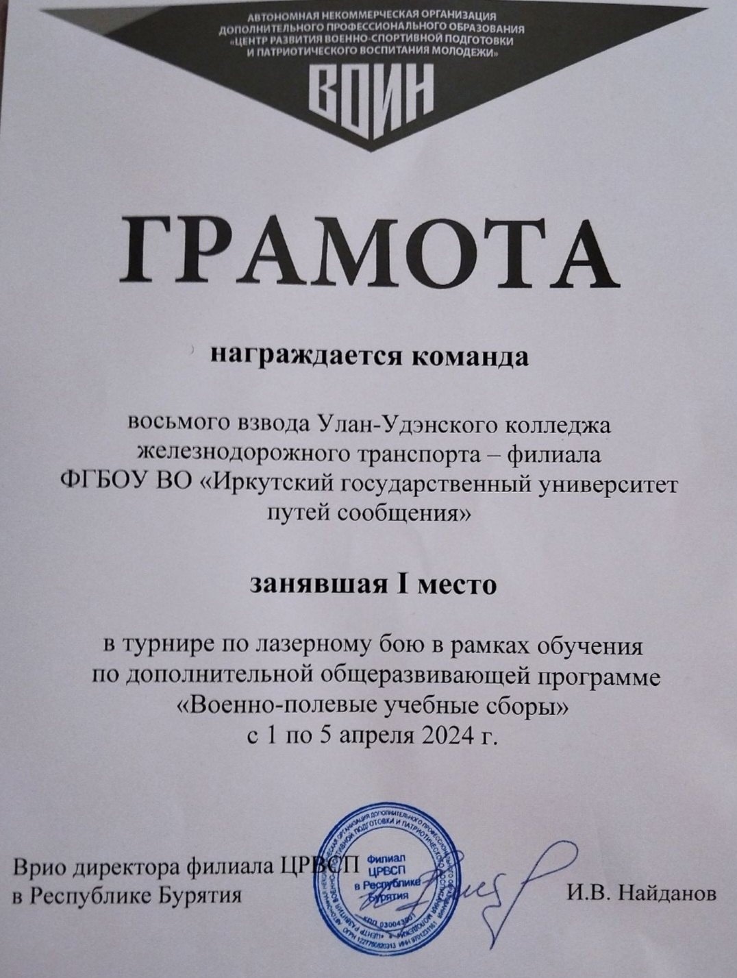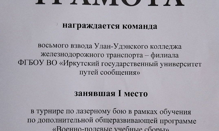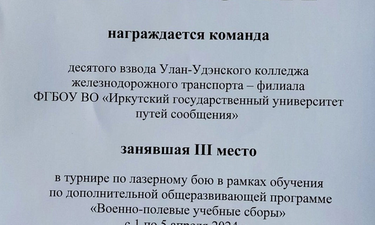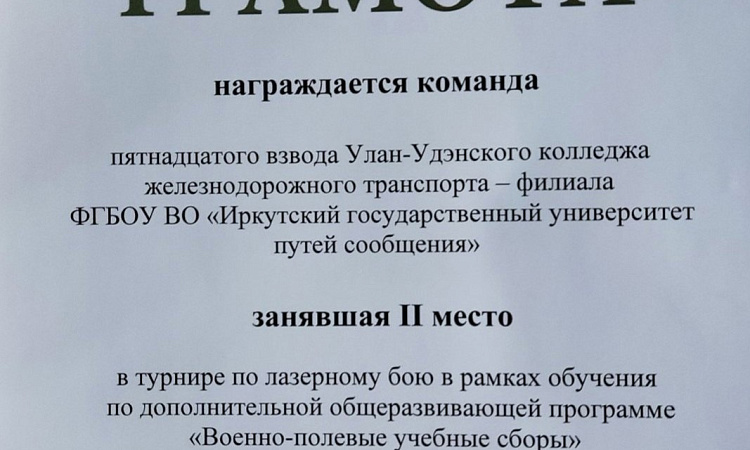 Поздравляем взводы УУКЖТ ИрГУПС с призовыми местами в турнире по лазерному бою в рамках обучения по дополнительной общеразвивающей программе "Военно-полевые учебные сборы".