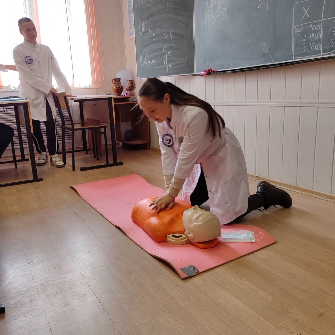 Студенты 3 курса БРМК рассказали нашим студентам 1 курса специальности Э о сердечно- лёгочной реанимации.