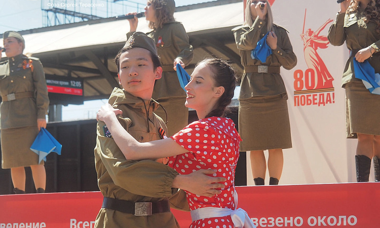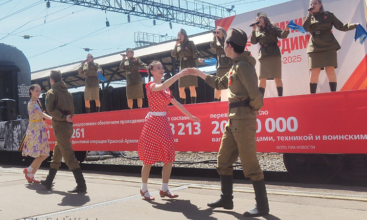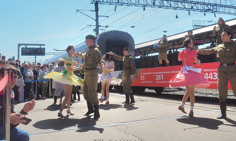 В составе ретропоездов - вагоны с техникой военных лет и платформы для выступления агитбригад. На вокзалах и станциях их прибытие становится частью праздничных концертных программ, привлекающих тысячи неравнодушных зрителей.