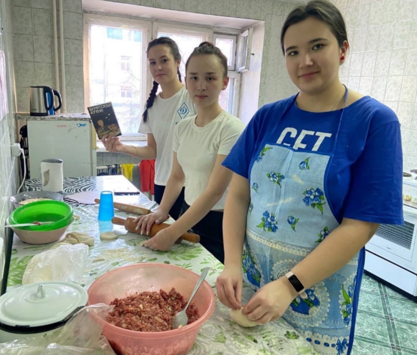 На столах были представлены разнообразные национальные блюда: позы, а также сладости и напитки. Были организованы мастер-классы по приготовлению традиционных бурятских блюд, где каждый мог попробовать себя в роли повара и узнать секреты кулинарного искусства. Девочки общежития замешивали тесто, делали фарш и лепили буузы своими руками — получилось очень красиво и, главное, вкусно!