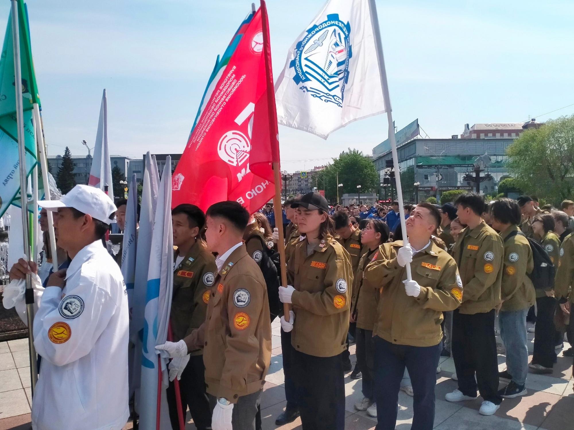31 мая слушатели отделения ПП и ПК УУКЖТ ИрГУПС по программе профессионального обучения профессиональной подготовки "Монтёр пути" 3 разряда - участники студенческих отрядов РСО "Монолит" и "Саяны" приняли участие в Марше готовности студенческих отрядов к открытию Третьего трудового сезона - 2024, 50 - летию со дня строительства Байкало-Амурской магистрали (БАМ), 65 - летию движения студенческих отрядов Российской Федерации и 20 - летию учреждения молодёжной общероссийской общественной организации "РСО". Участники торжественным маршем прошли от площади Советом до Мемориала Победы.