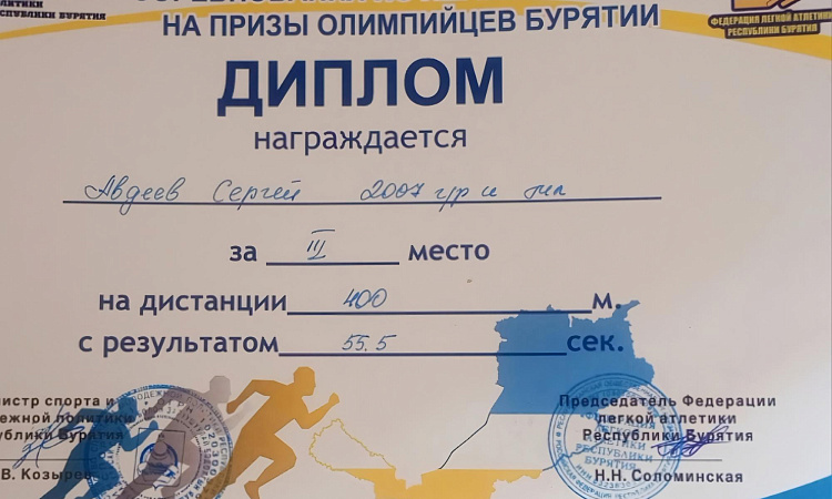 Студент УУКЖТ ИрГУПС Авдеев Сергей победитель соревнований по легкой атлетике на призы олимпийцев Бурятии