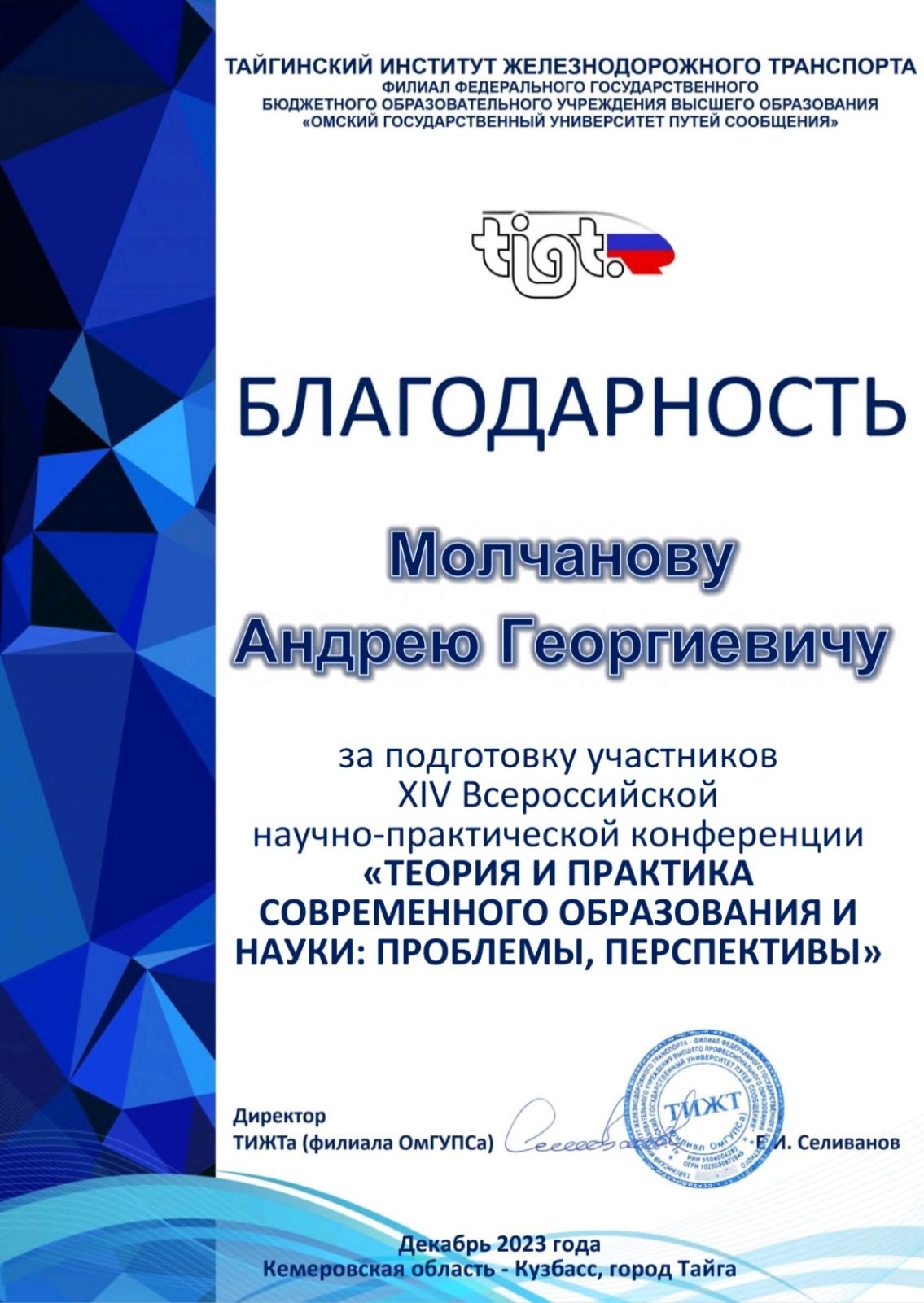 Студент УУКЖТ ИрГУПС Теслев Пётр участник Всероссийской НПК в городе Тайга.