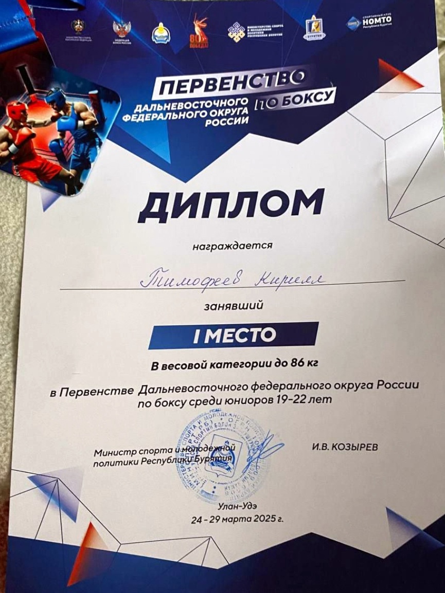 Студент УУКЖТ победил на Первенстве ДФО по боксу среди юниоров.