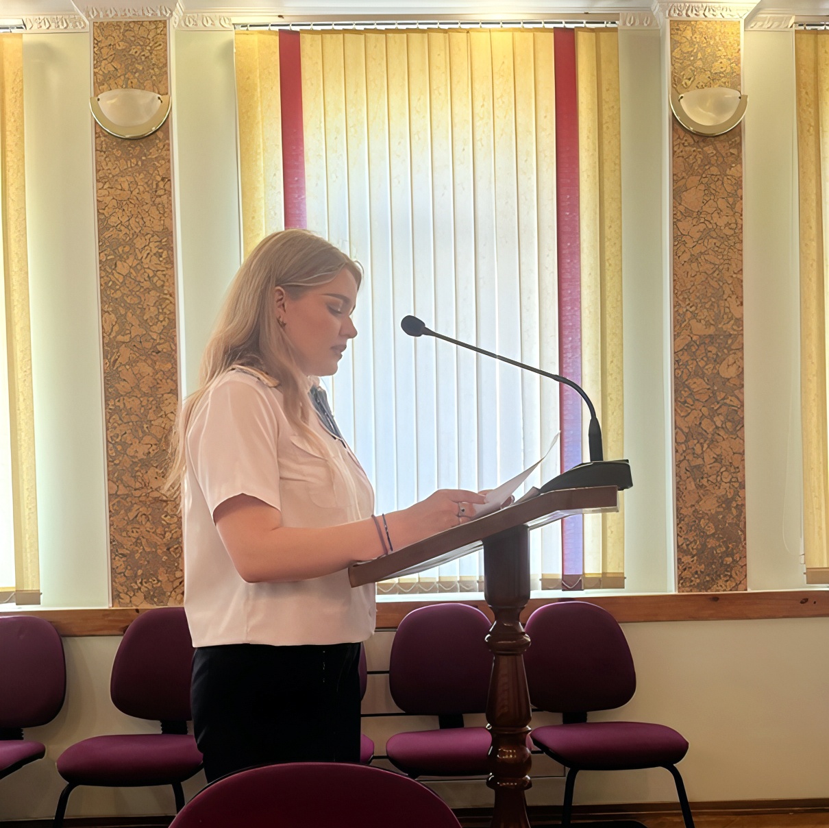 В завершении учебного года студенты УУКЖТ ИрГУПС продолжают активно участвовать в научной сфере студенческой жизни. Студентка специальности 23.02.01 Организация перевозок и управление на транспорте (по видам) Кравцова Ксения выступила на Всероссийской научно-практической конференции АСКИТТ "Грани науки" с докладом о героях специальной военной операции.
