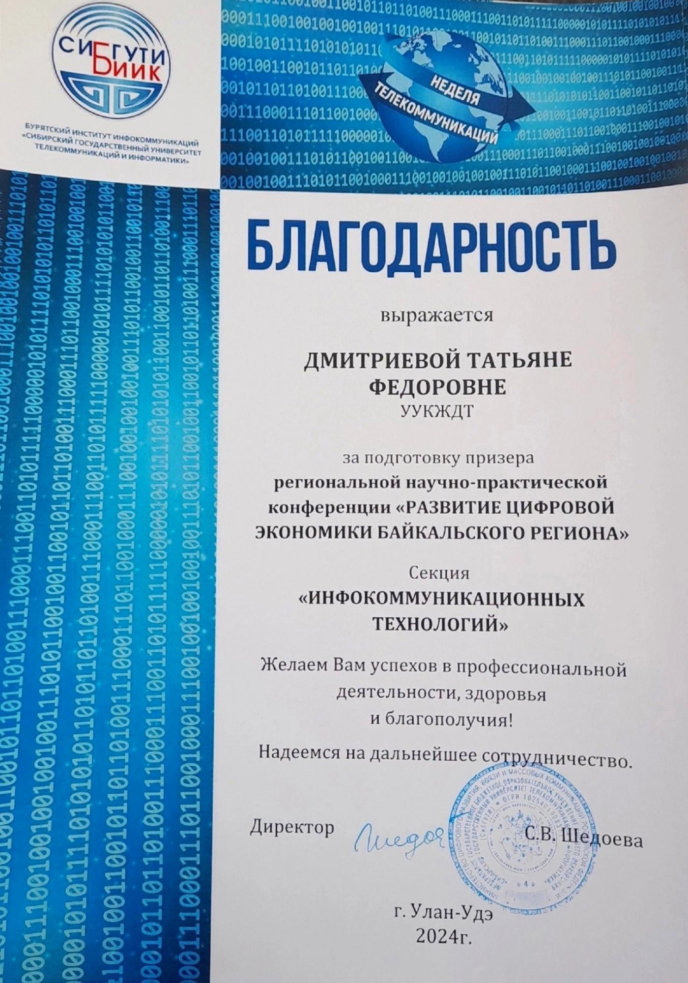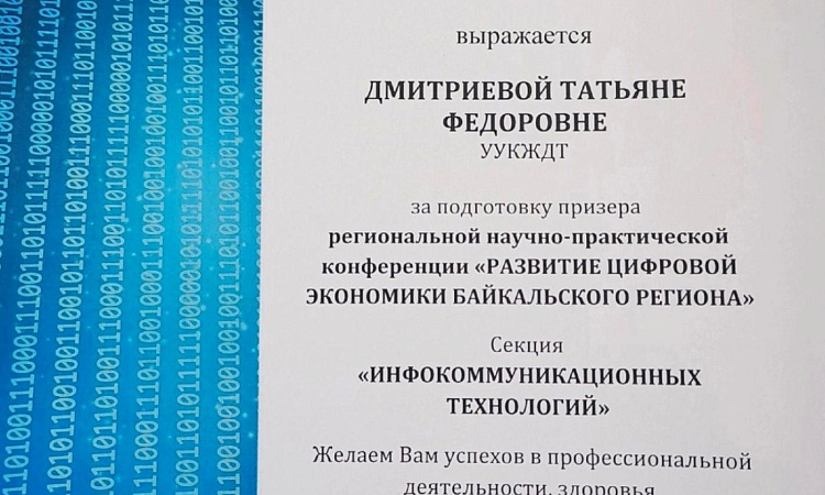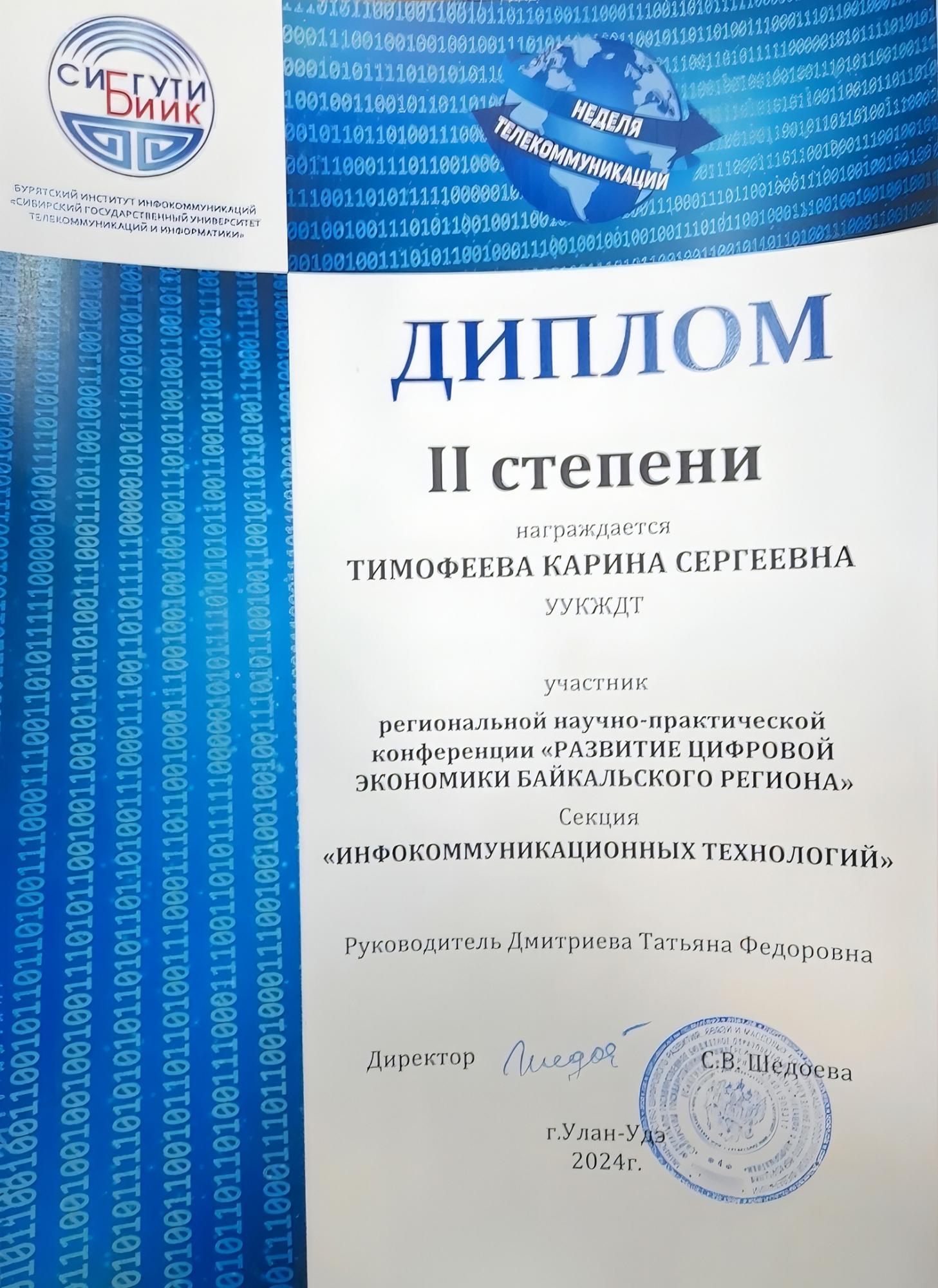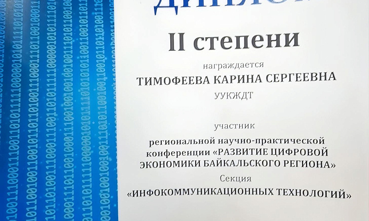 Студентка УУКЖТ ИрГУПС Тимофеева Карина заняла 2 место в республиканской НПК «Развитие цифровой экономики Байкальского региона»