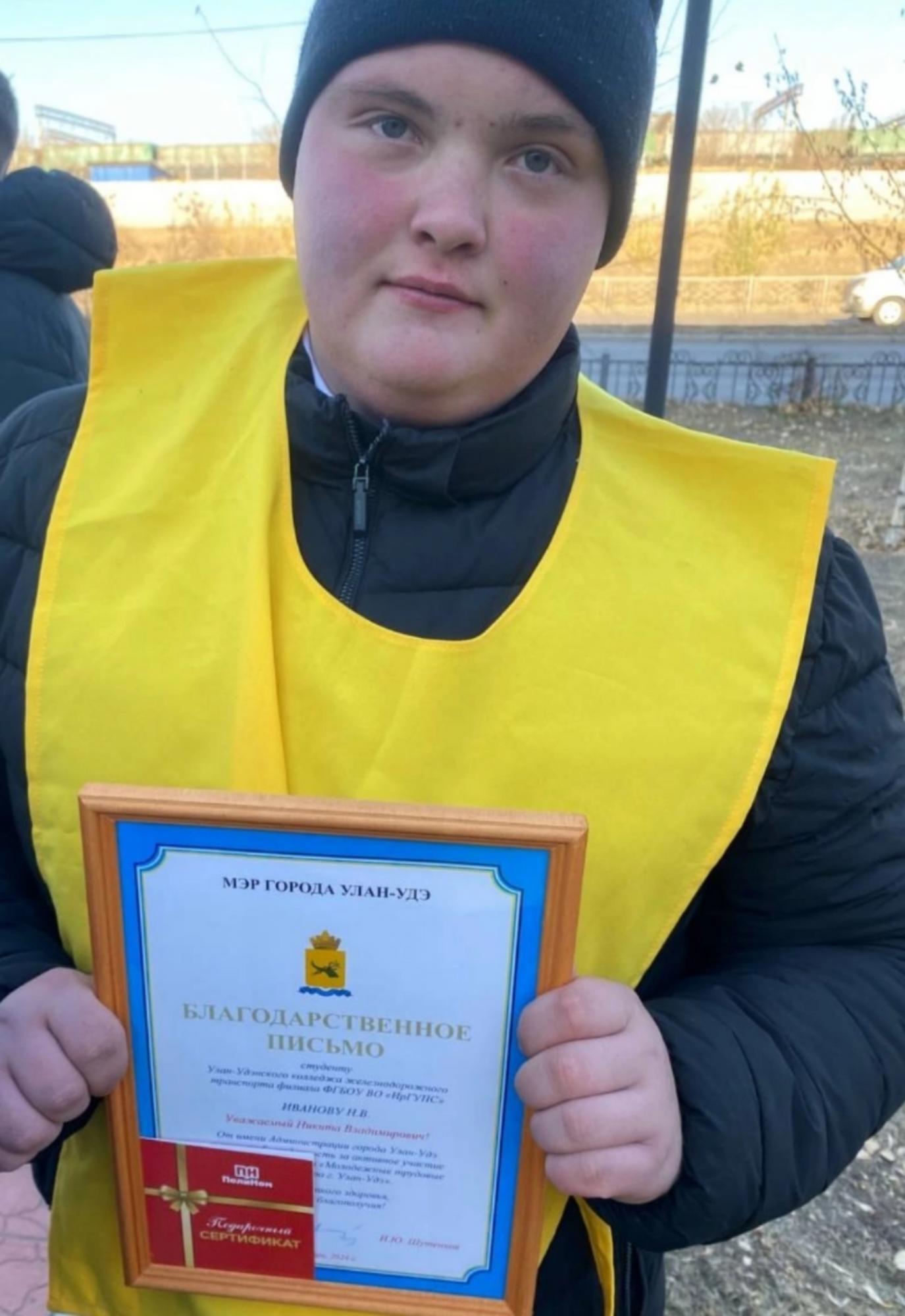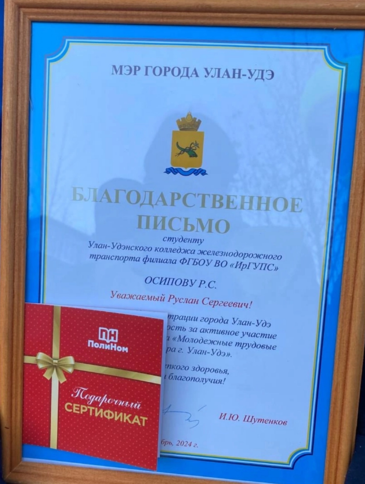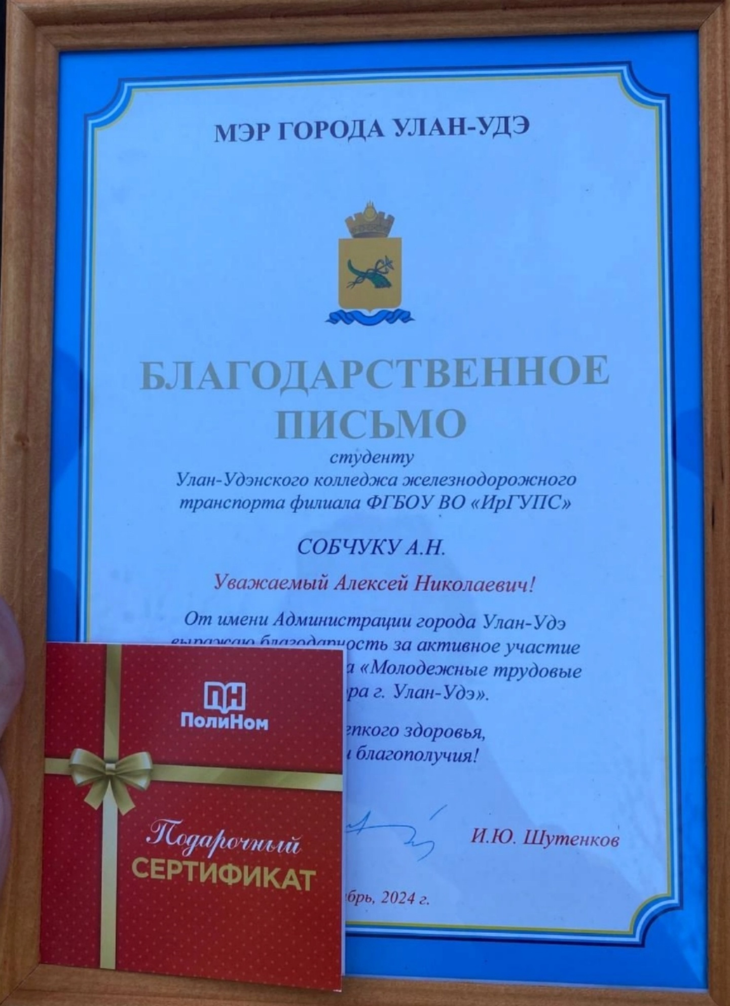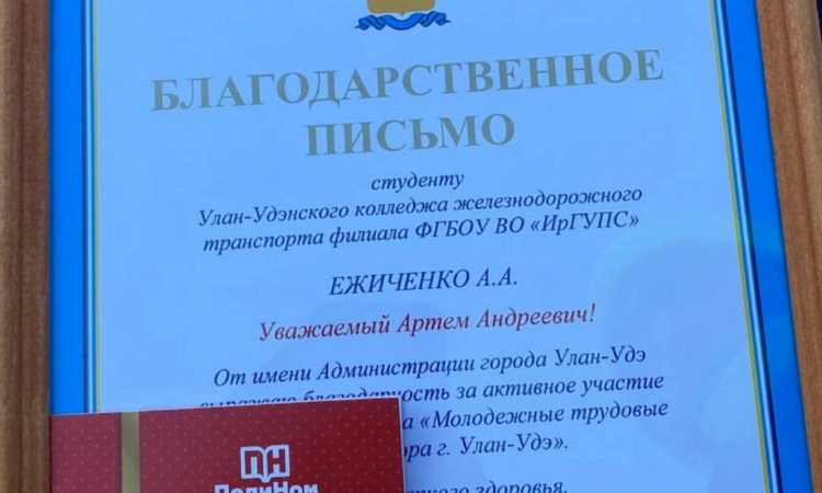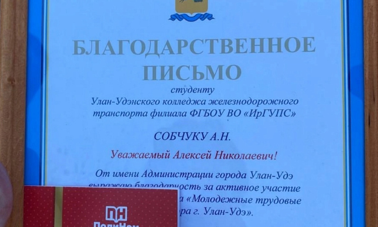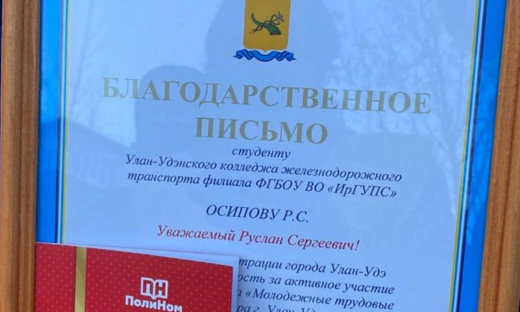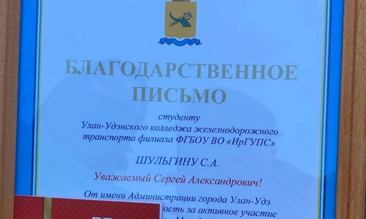 Студенты УУКЖТ ИрГУПС награждены благодарственными письмами мэра города Улан-Удэ