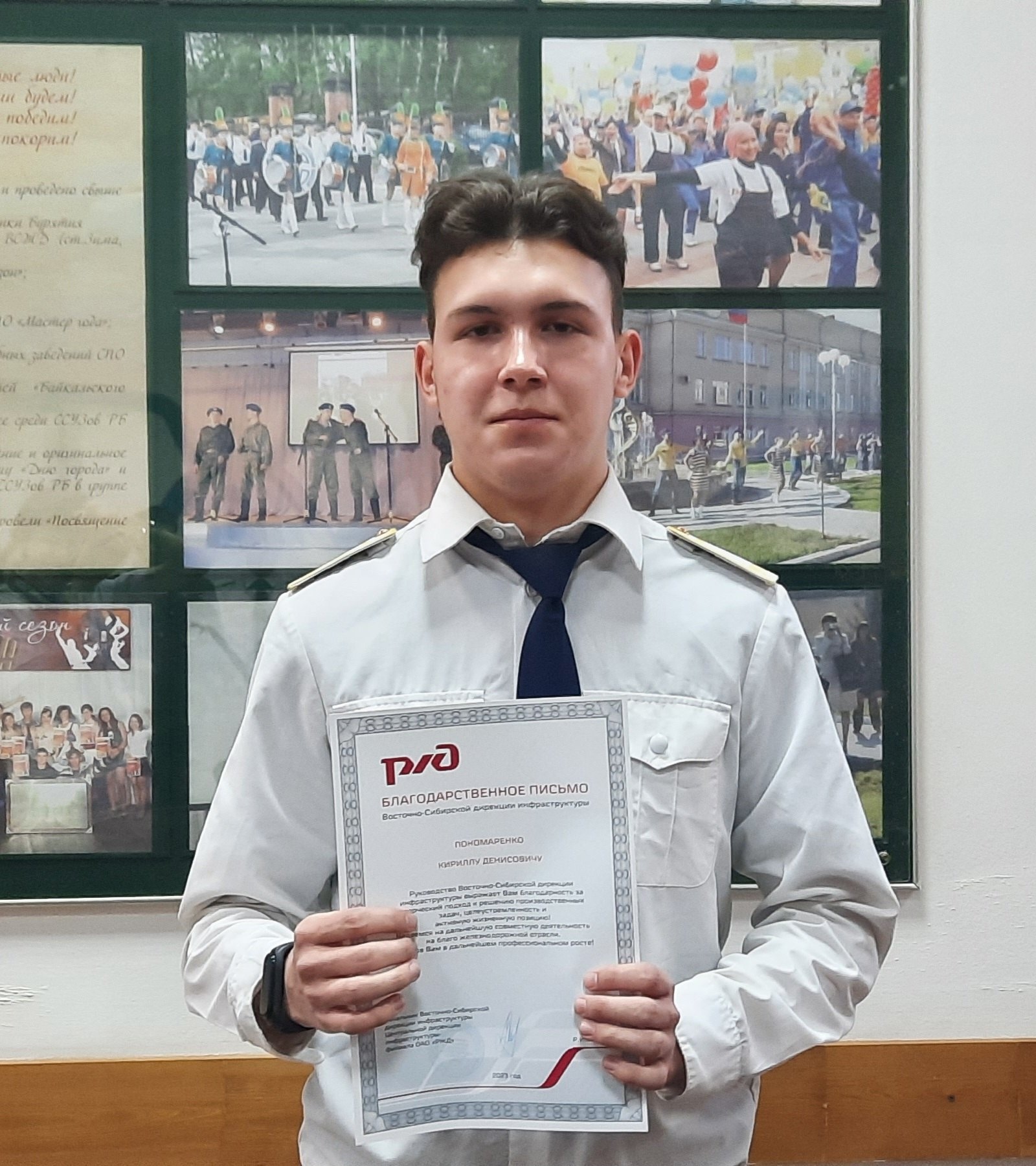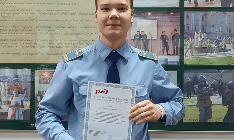 За добросовестный труд, творческий подход к решению производственных задач, личный вклад в развитие инфраструктуры БАМа и активное в реализации Всероссийского студенческого проекта "БАМ 2.0" студенты УУКЖТ ИрГУПС награждены почетными грамотами Центральной дирекции инфраструктуры и благодарственными письмами Восточно- Сибирской дирекции.