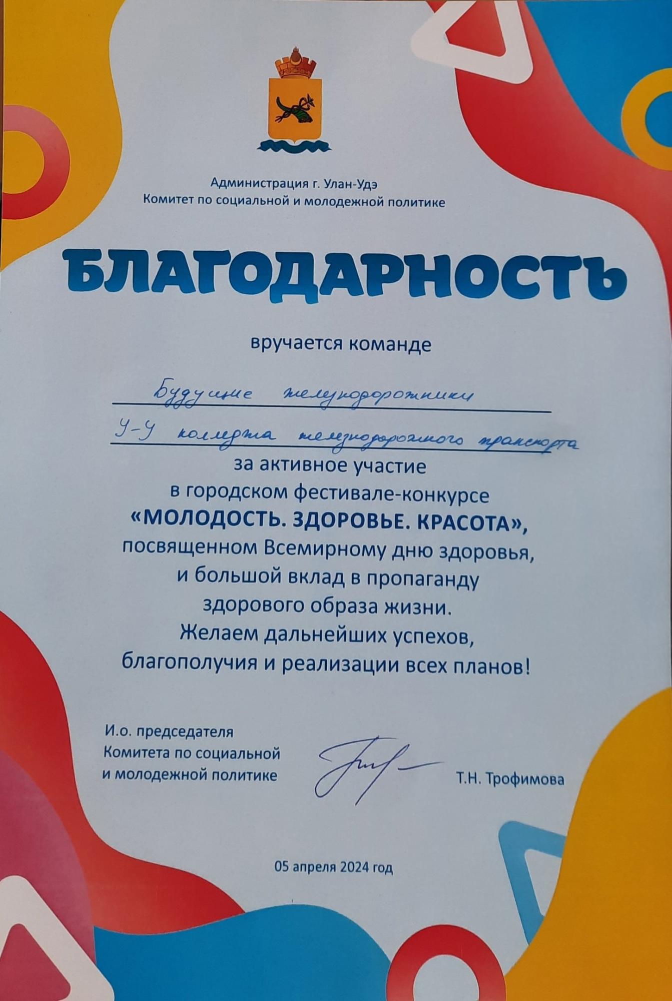 Студенты УУКЖТ ИрГУПС приняли участие в фестивале «Молодость, красота, здоровье».