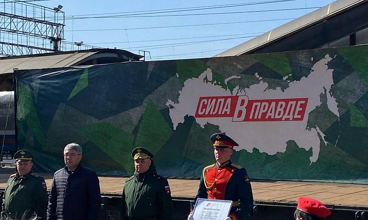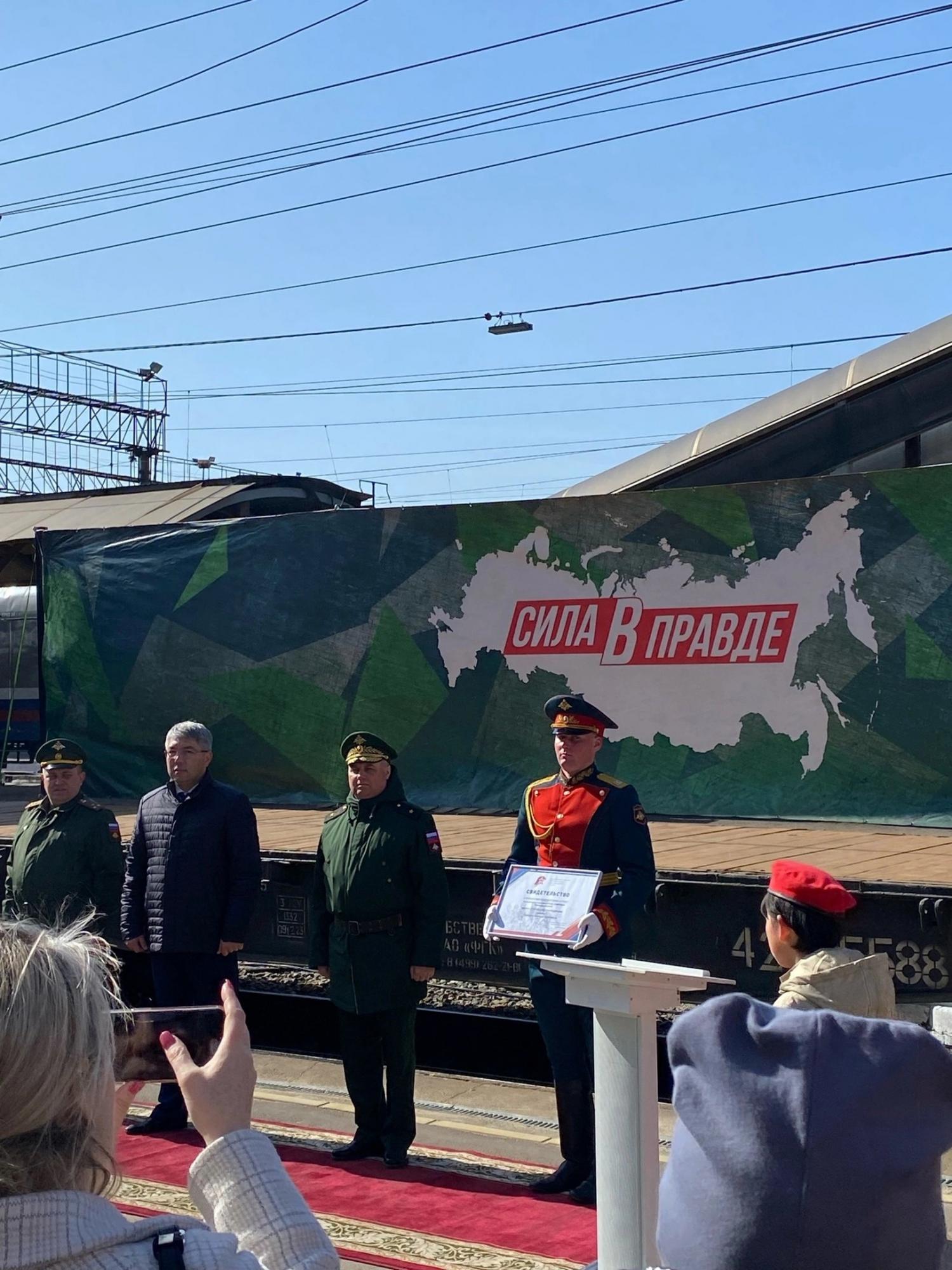 10 апреля на железнодорожном вокзале совершил остановку тематический поезд Минобороны РФ «Сила в правде».