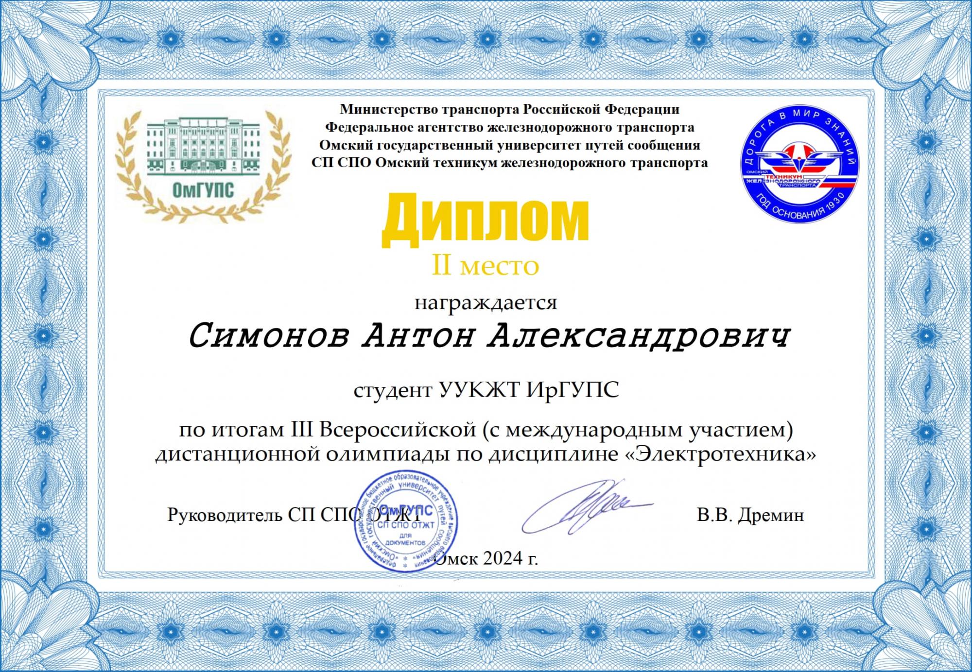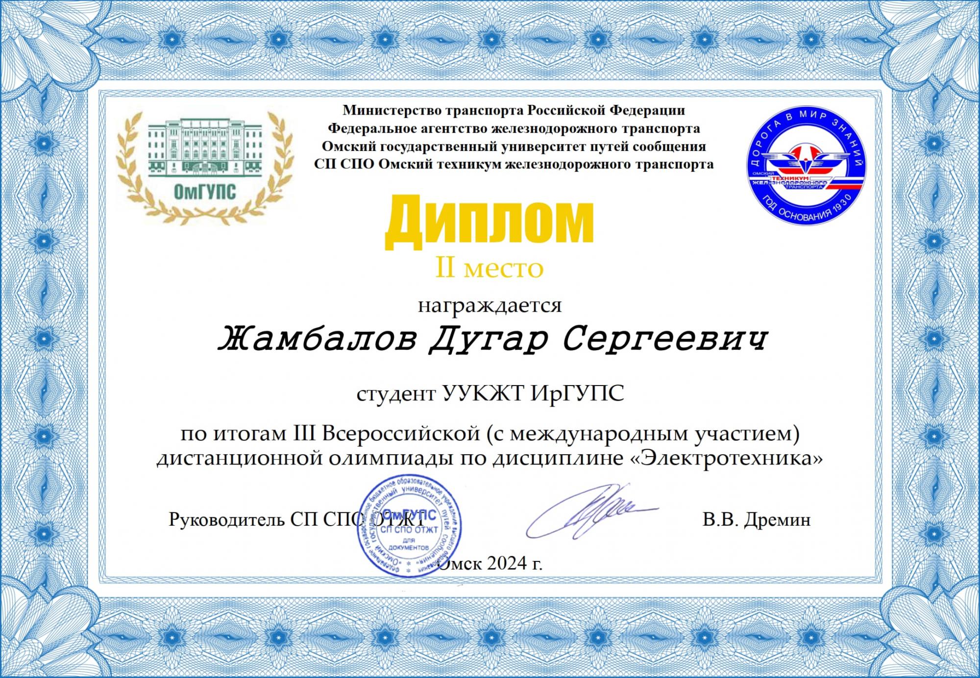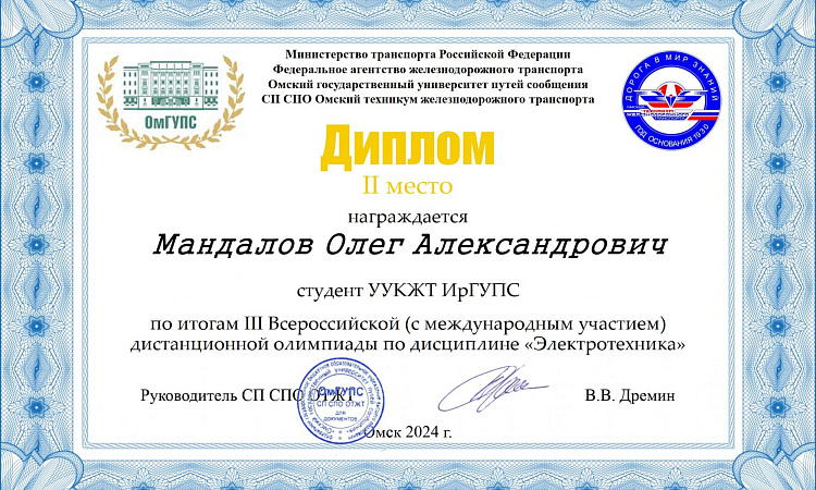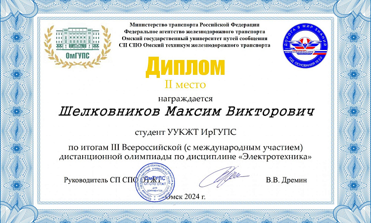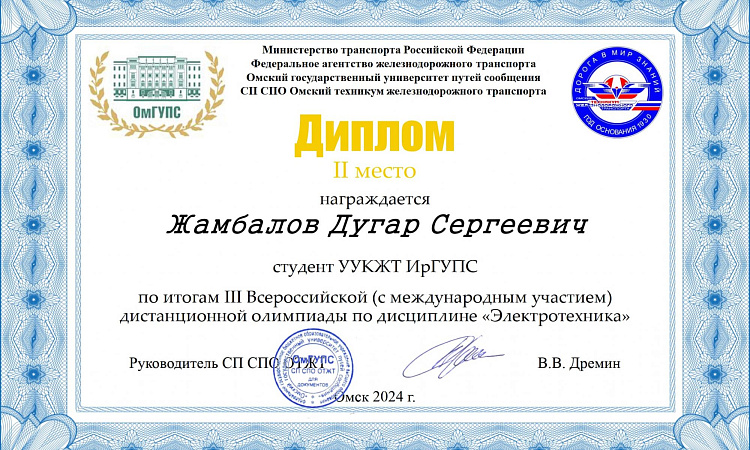 Студенты УУКЖТ ИрГУПС призеры III Всероссийской олимпиады с международным участием по дисциплине "Электротехника"