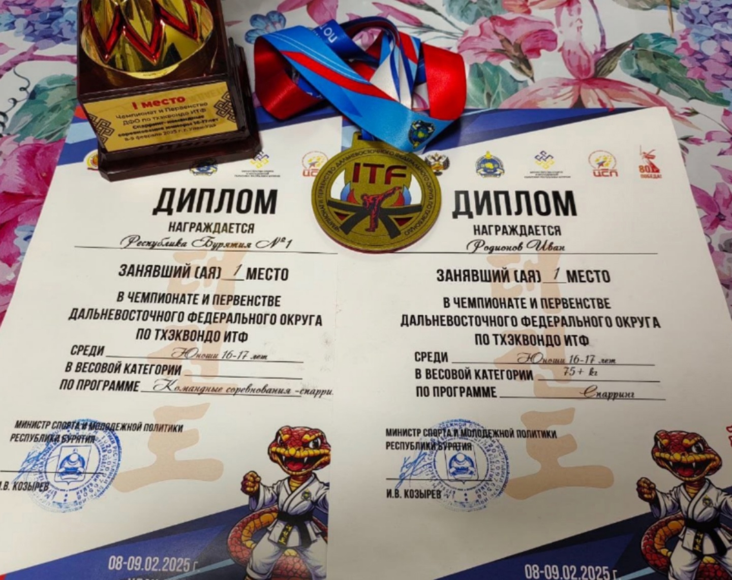 Родионов Иван студент специальности АТМ занял 1 место в чемпионате и первенстве Дальневосточного Федерального округа по тхэквондо! Поздравляем, желаем дальнейших спортивных побед!