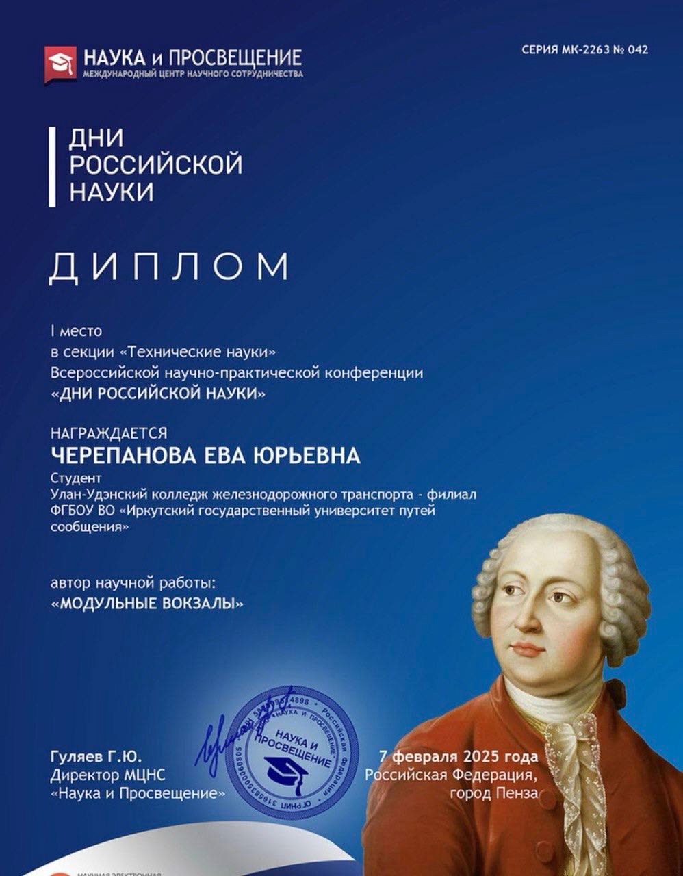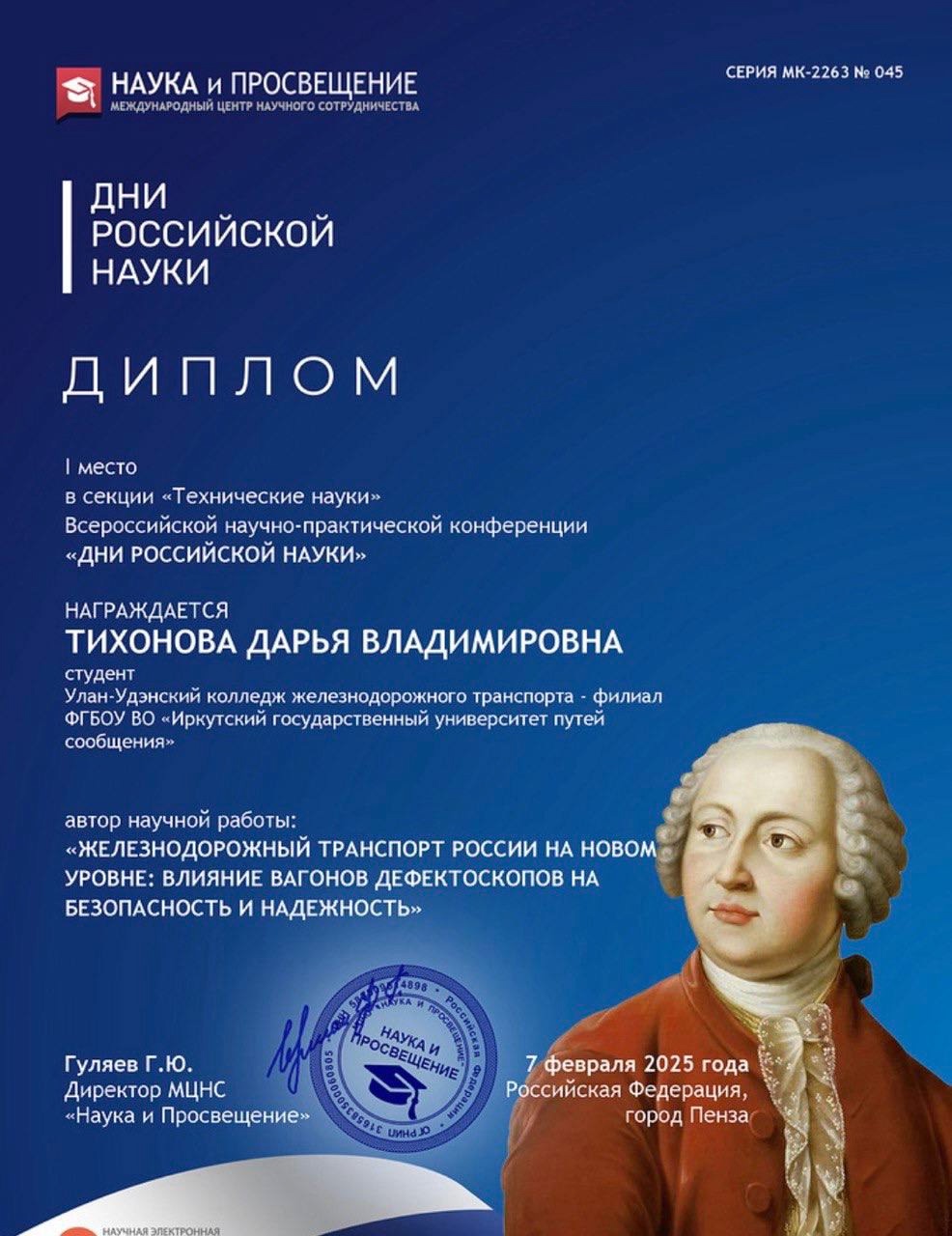 Студенты УУКЖТ ИрГУПС проявляют научное рвение, принимая успешное участие во Всероссийской научно-практической конференции «Дни российской науки» в городе Пенза.
