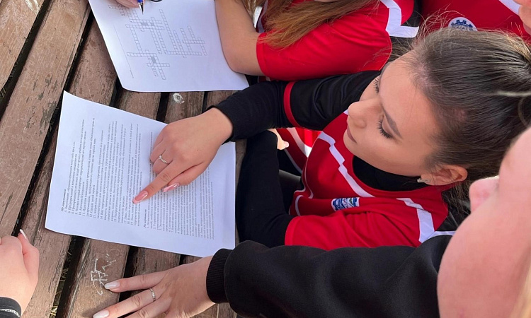 Команду УУКЖТ представляли группы Д.9-22-2 и Д.11-23-3, которые творчески подошли к этапу "Визитка", оформив плакат, речевку и флешмоб, разгадали кроссворд, показали себя сплоченной командой.