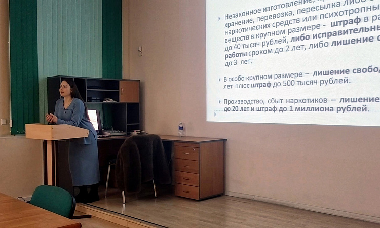 Сотрудник Республиканского наркологического диспансера провела сегодня для студентов группы федерального проекта Профессионалитет информационную беседу на тему запрещённых веществ и препаратов, о том, какой вред приносят алкоголь, наркотики, курение в жизнь молодых людей.
