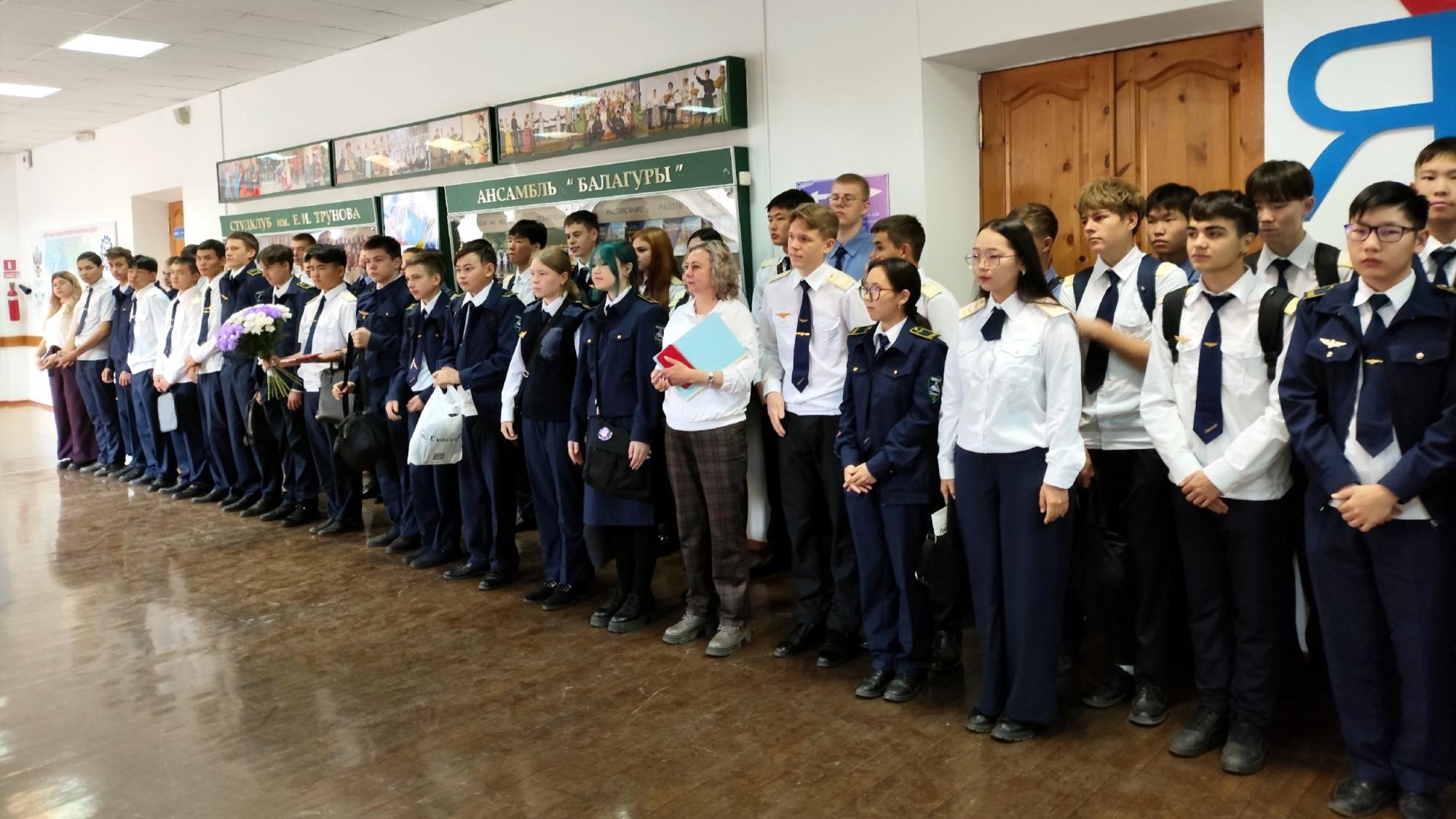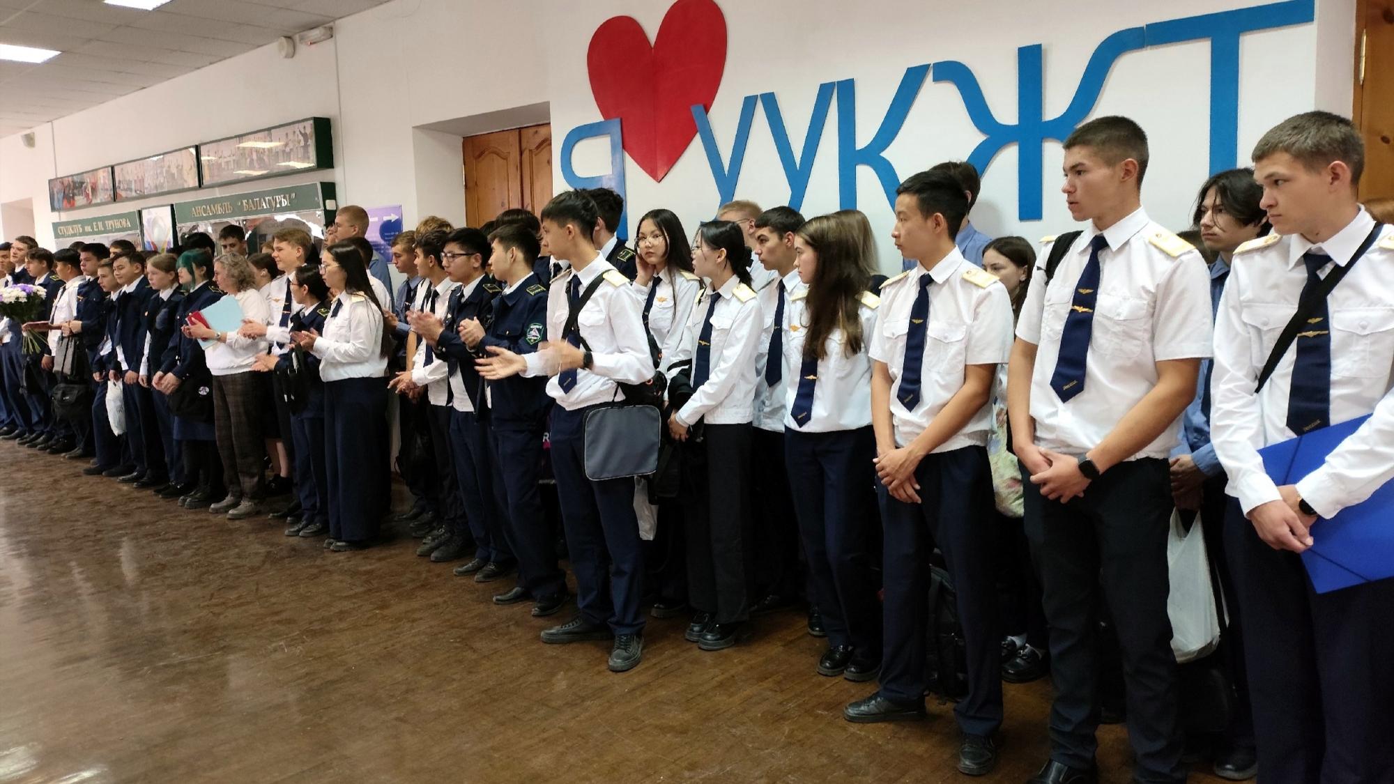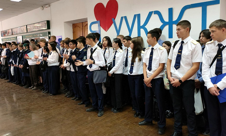 Традиционная линейка поднятия флага РФ и флага РБ в УУКЖТ ИрГУПС.