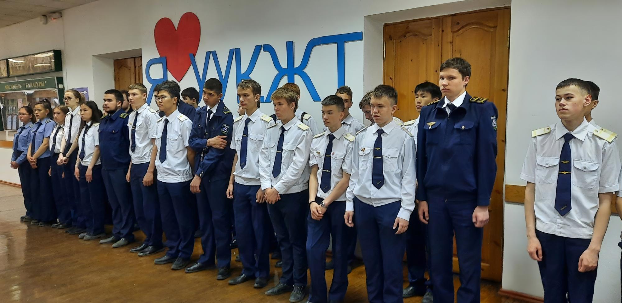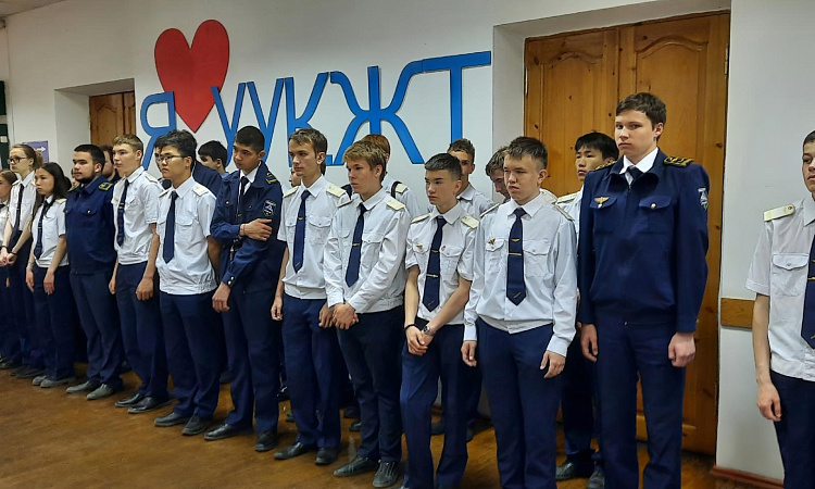 Традиционная линейка поднятия флага РФ и флага РБ в УУКЖТ ИрГУПС.