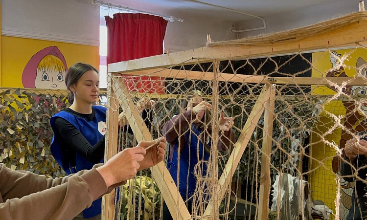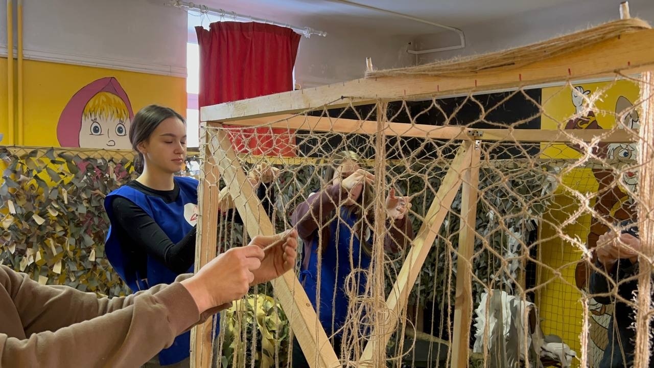 Молодежь это яркие представители волонтерства, поэтому одним из этапов стало совместное плетение сетки для СВО.